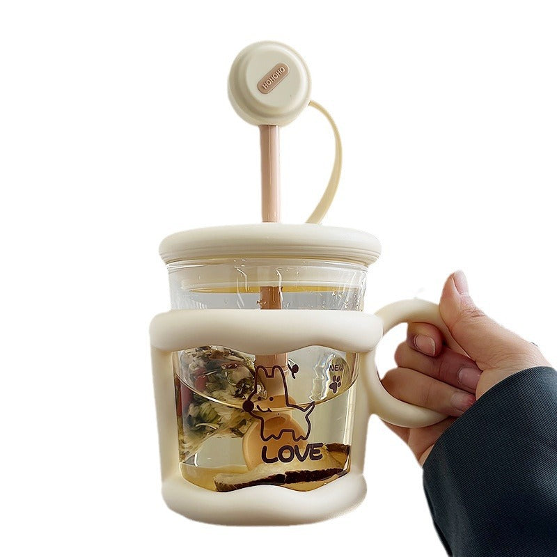 Made from high-quality heat-resistant glass, this mug is durable, safe, and perfect for daily use with hot or cold beverages. The included straw and spoon make it easy to stir and sip, while the lid prevents spills and keeps drinks warm or fresh longer. Its charming and cute design adds a playful yet stylish touch to your kitchen, office desk, or breakfast nook.