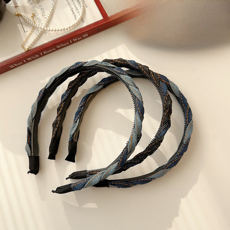 Denim Twist Braid Headband โ Trendy Retro Look