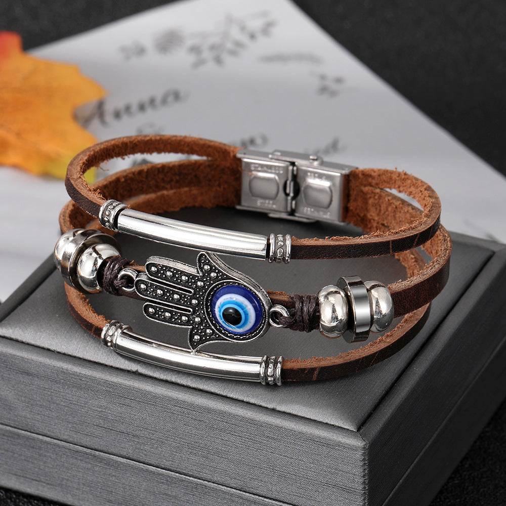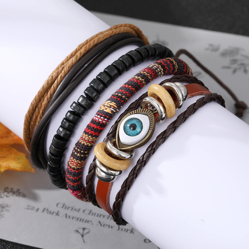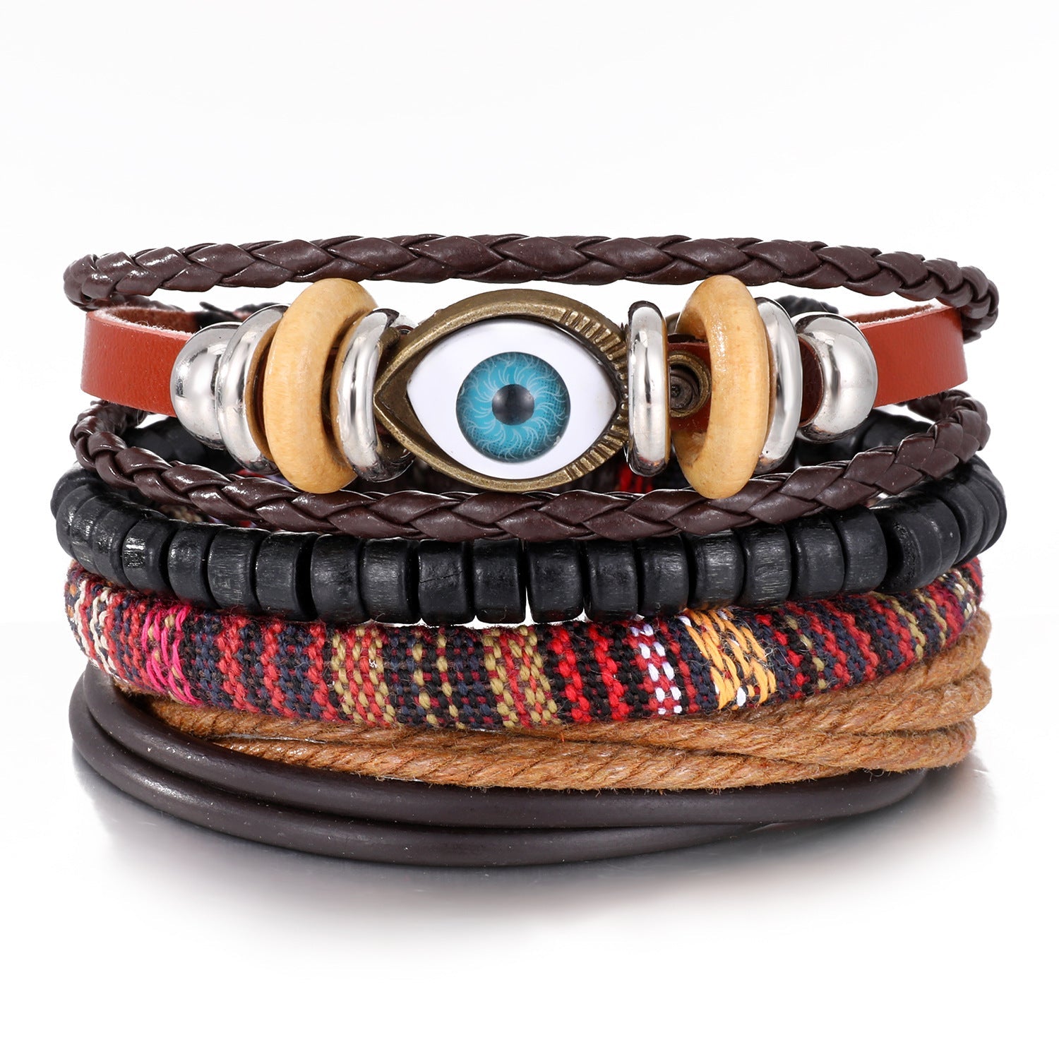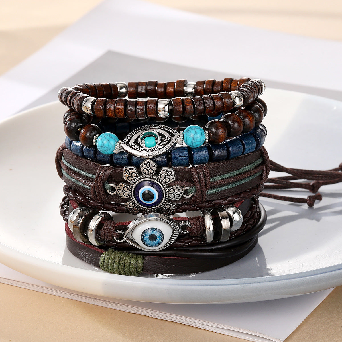 Discover the bold charm of our Devil's Eye Ethnic Style Retro Men's Bracelet Set – a perfect blend of tradition and trend for fashion-forward men in Nepal 🇳🇵. This multi-layer turquoise leather bracelet features a distinctive Devil’s Eye charm 🧿, believed to ward off negative energy and bring protection 🛡️. With its rustic textures and earthy tones, this bracelet set is ideal for men who love to express their individuality through accessories 🎯.