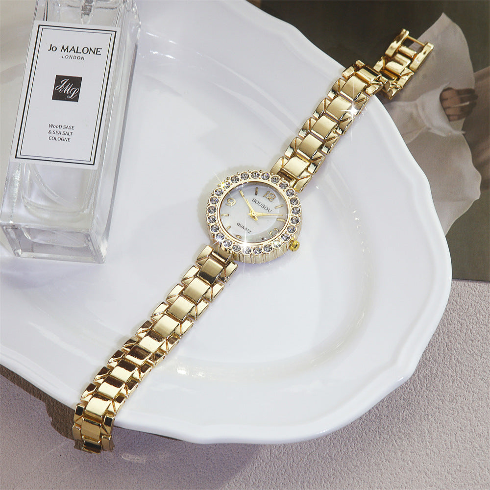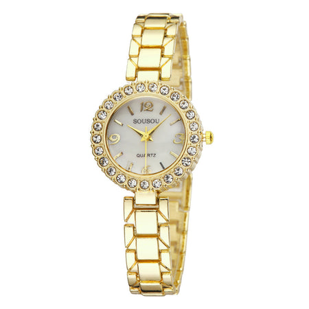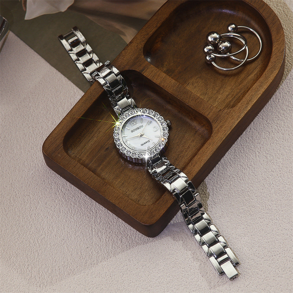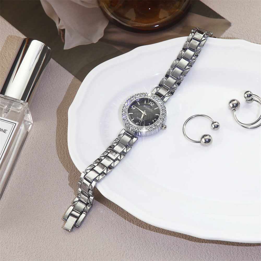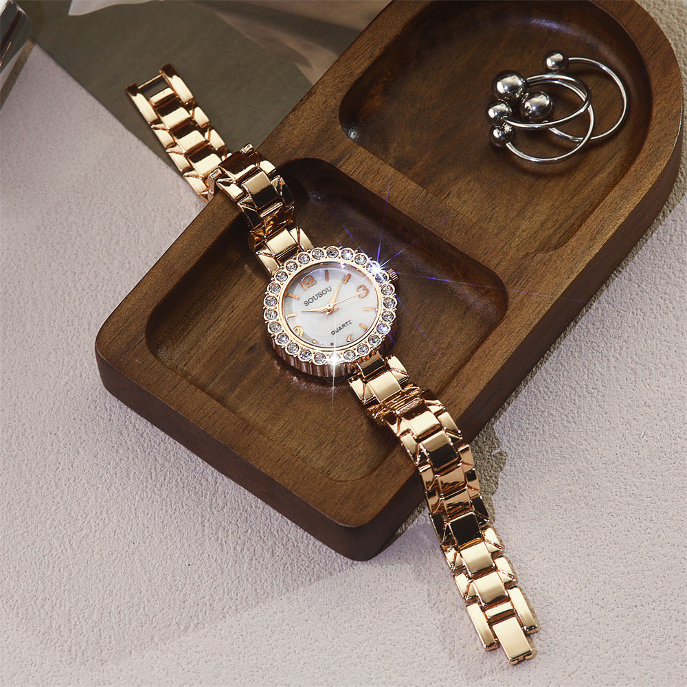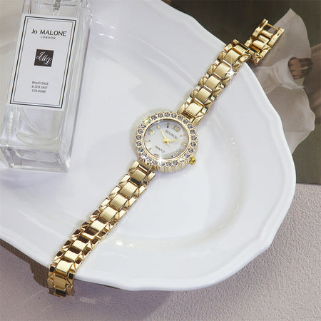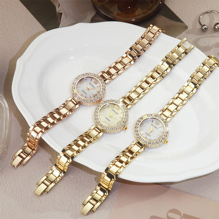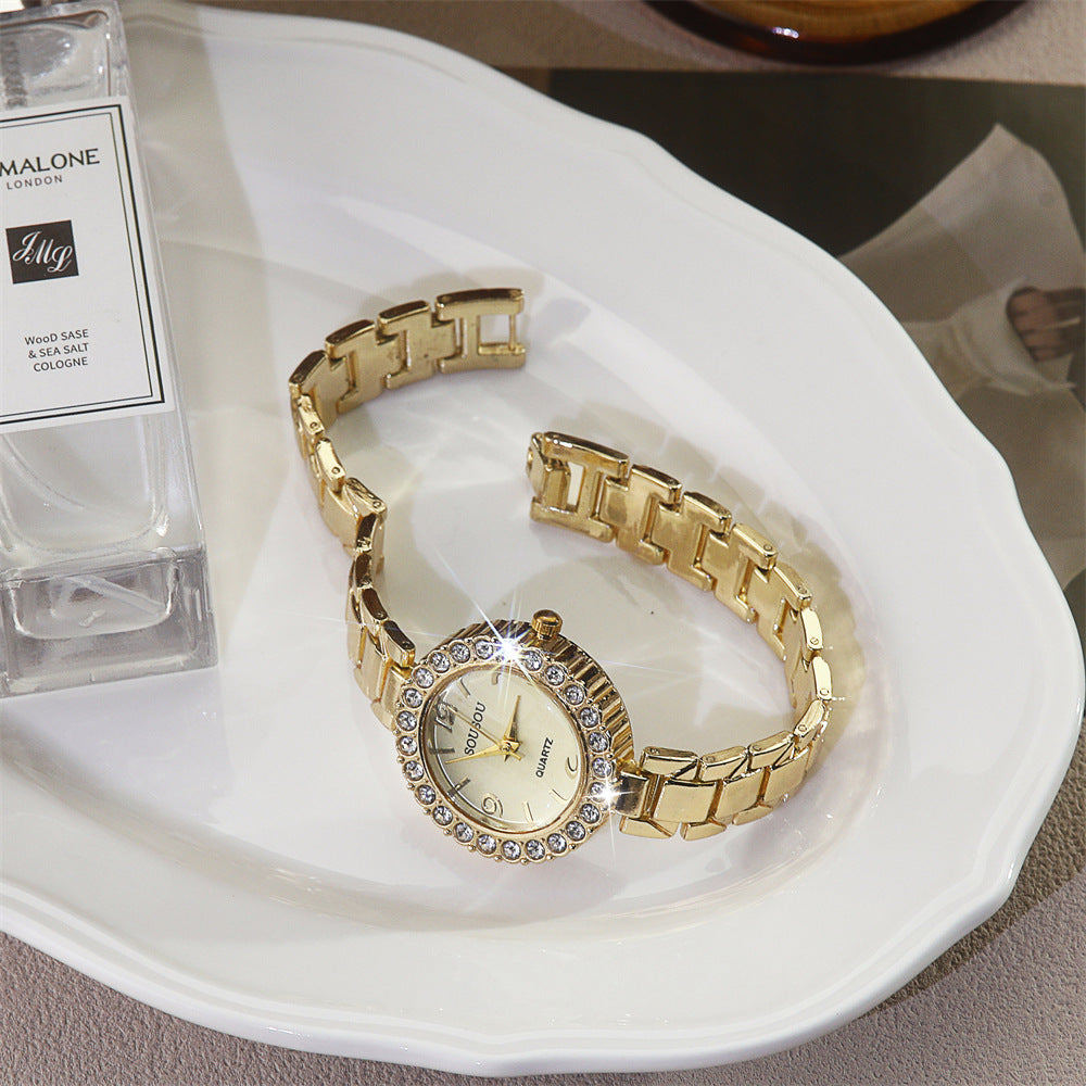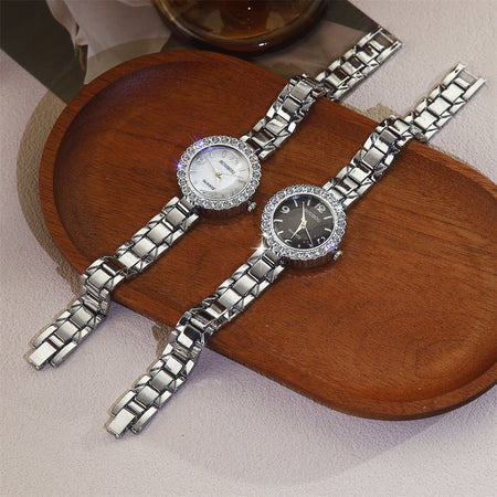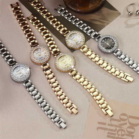Diamond-Accented Women’s Quartz Watch Thin Alloy Strap