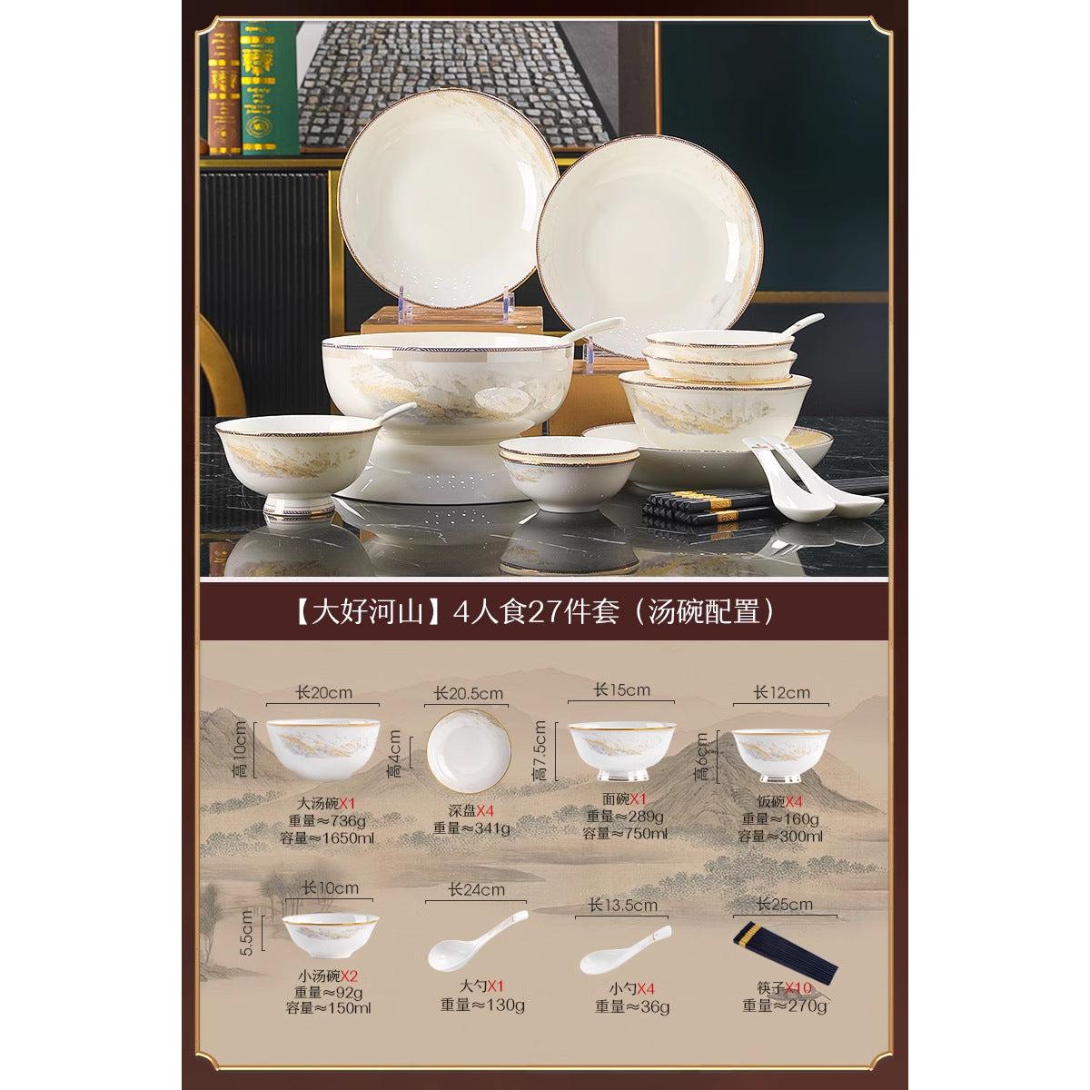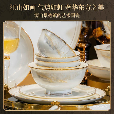Bring luxury to your everyday dining with this 2025 Jingdezhen ceramic dish set, combining elegance, durability, and practicality. Includes bowls, plates, and chopsticks for a complete tableware experience.