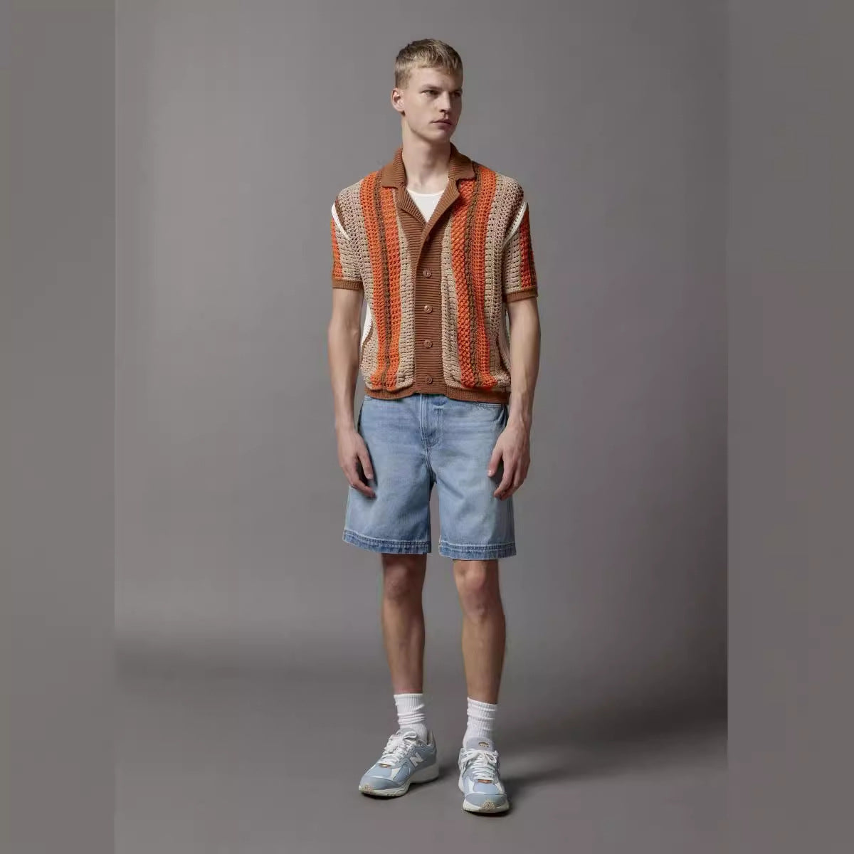 Lightweight and trendy, this men’s sleeveless sweater features a Korean-style short-sleeved knit for a fresh take on summer layering. With a loose V-neck fit, it’s a breathable piece that’s ideal for warm-weather fashion.