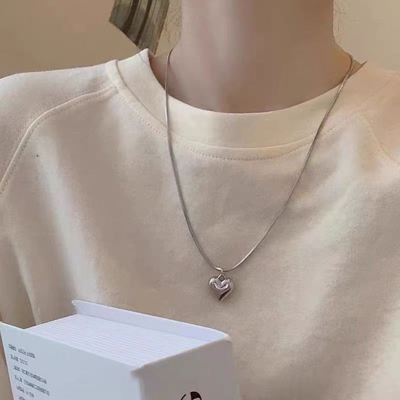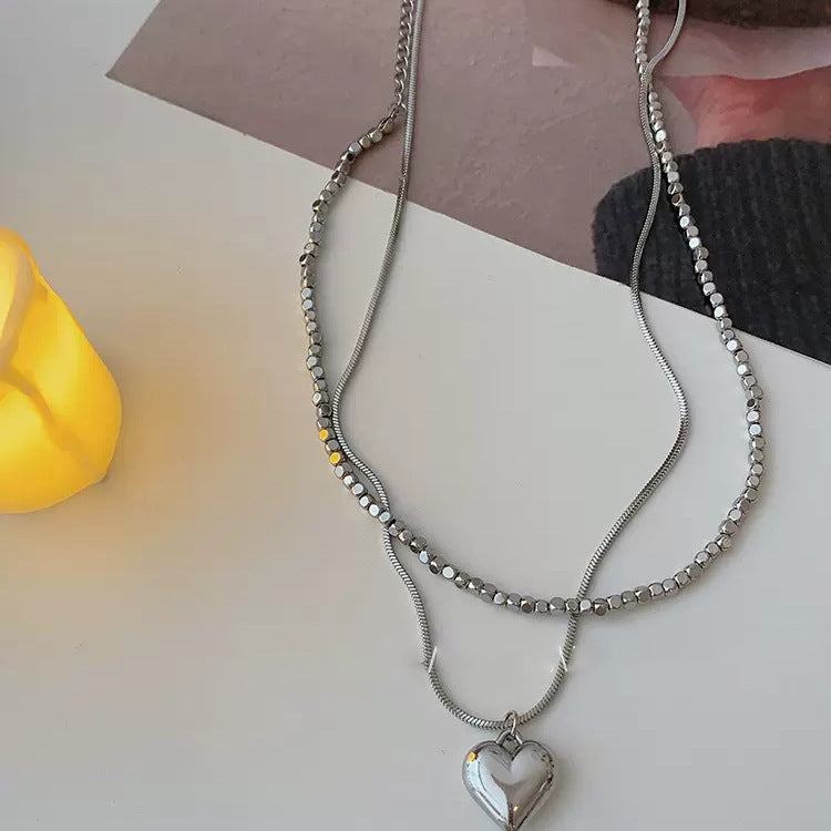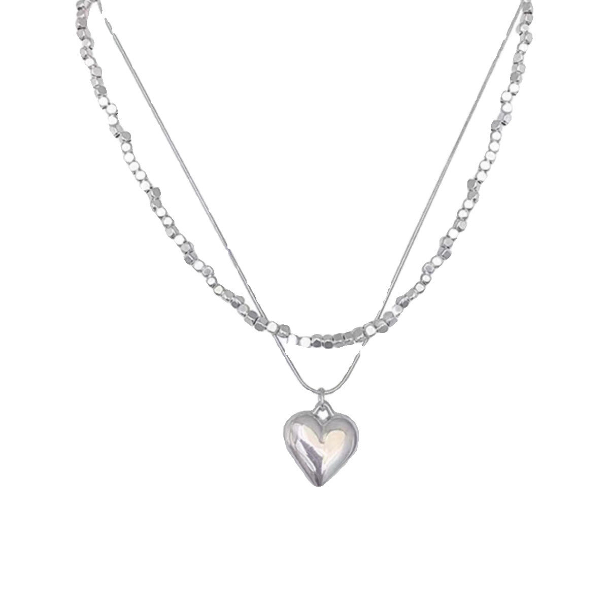 Double-Layer Silver Love Necklace – Trendy Clavicle Chain