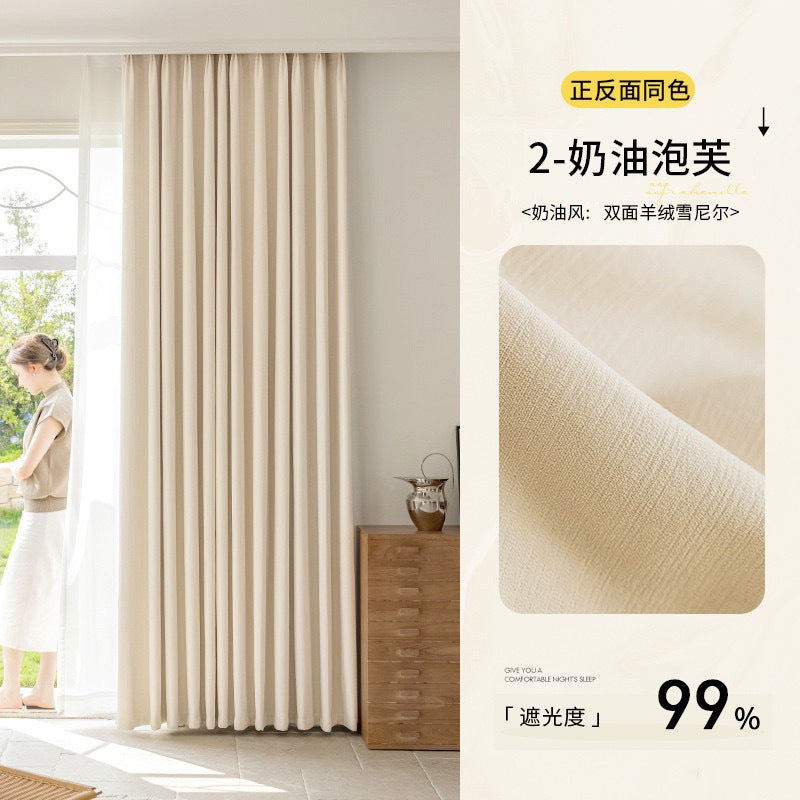 Double-Sided Chenille Curtains – Full Shading, High-End Cream