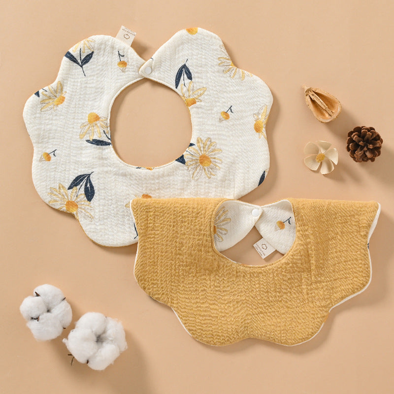 Double Sided Pure Cotton Waterproof Baby Petal Bib Soft Care