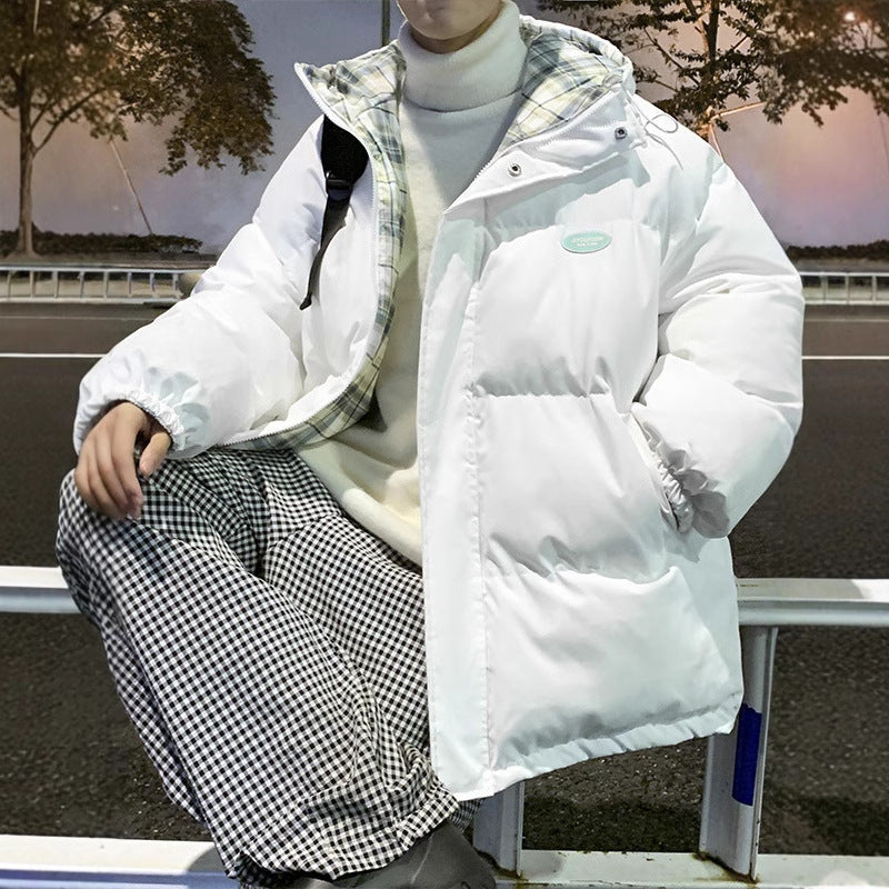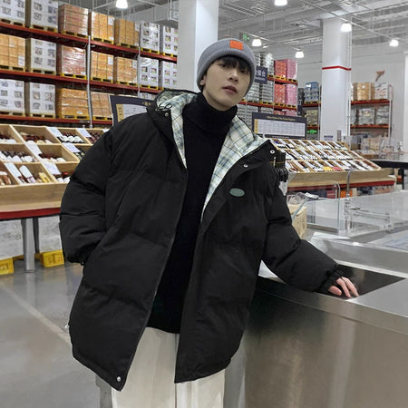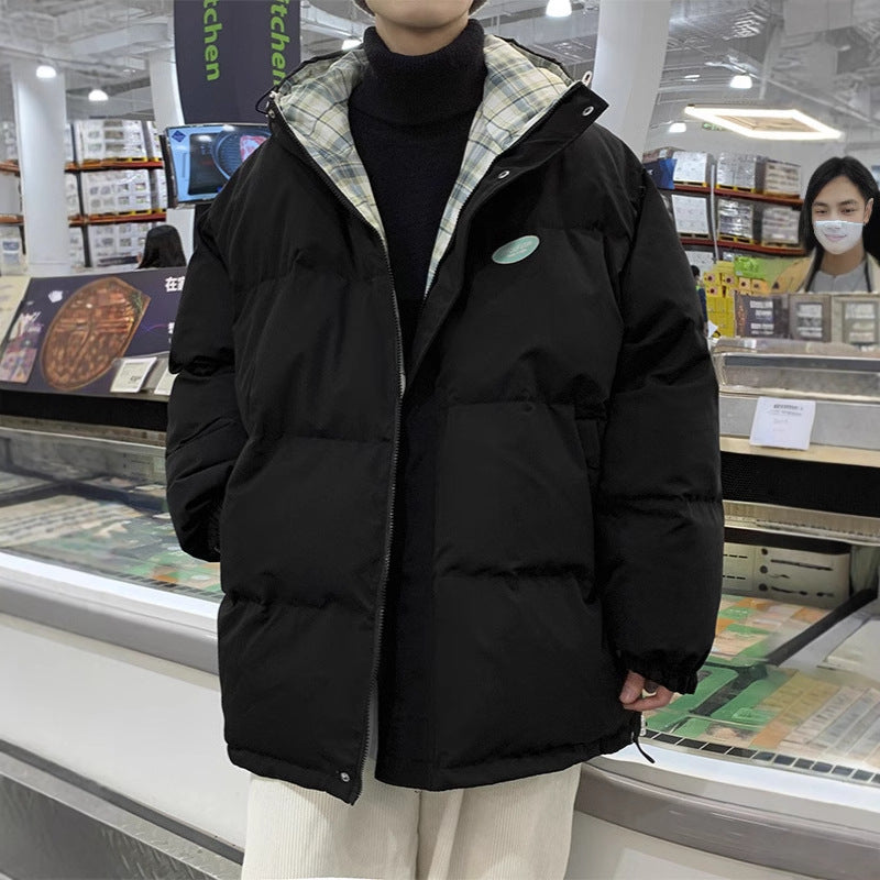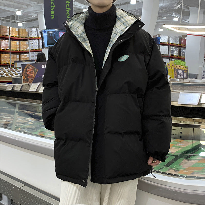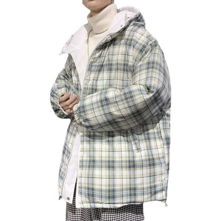 Men’s Thickened Down Cotton-Padded Jacket – Korean Plaid Winter