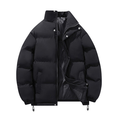 Perfect for cold-weather activities, weekend outings, or city commuting, this down cotton-padded jacket offers superior heat retention while allowing freedom of movement. Its vertical collar and thickened design provide maximum protection from chilly winds. The minimalist solid color ensures effortless styling, while the trendy puffer “bread suit” silhouette keeps you on-trend.