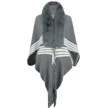 Wrap yourself in fashionable warmth with this stylish tassel cape shawl! ๐งฃโจ