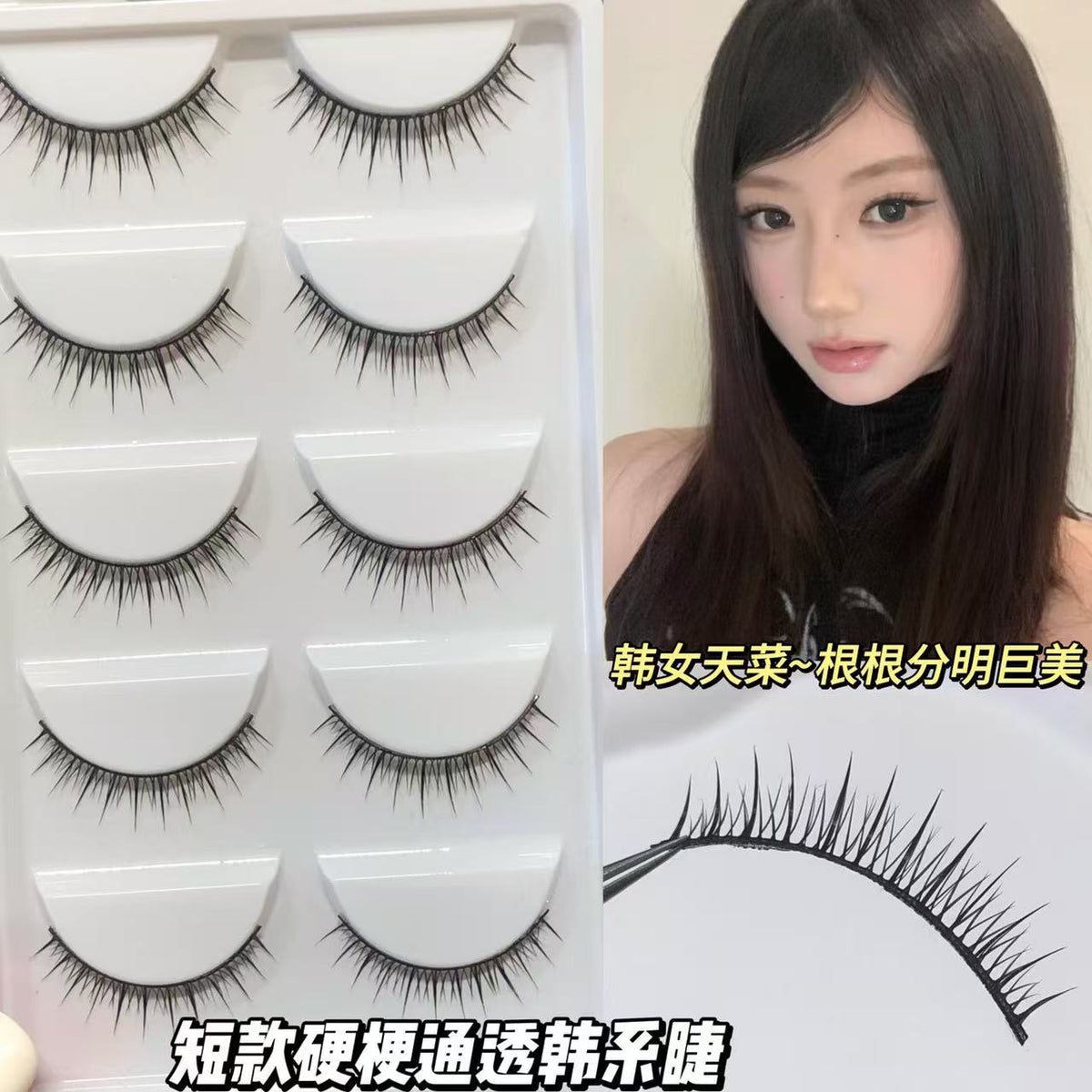 Achieve a natural, flawless Korean makeup look with the Duodou Tian Ultra-Short Female Group False Eyelashes. Designed with hard stems for easy application and sturdy support, these lashes perfectly complement double eyelids and create a subtle yet defined eye effect. 👁️✨