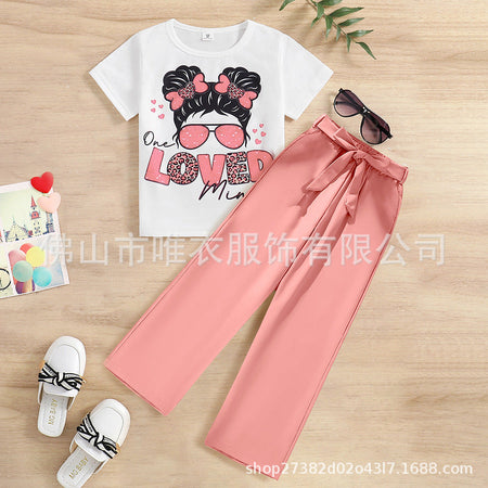 Paired with trendy wide-leg pants, this set offers relaxed movement and modern flair. The elastic waistband ensures a snug yet gentle fit, making it ideal for school, family outings, or playdates at the park. 🏃♀️🌼