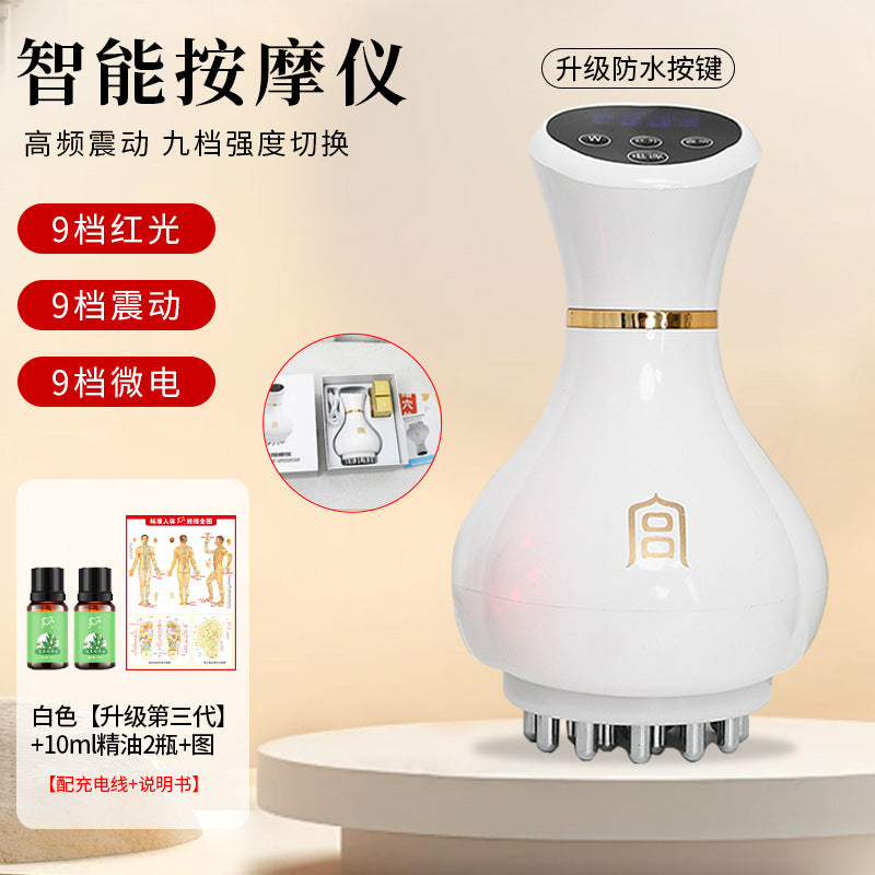 Relax, detoxify, and relieve muscle tension with this Electric Meridian Brush Scraping Massage Instrument. Designed for meridian dredging, warm moxibustion, and full-body therapy, this handheld rechargeable device provides vibration and kneading massage for the abdomen, back, legs, and more. Perfect for home use, wellness enthusiasts, and anyone seeking portable and universal muscle relaxation.