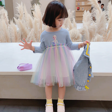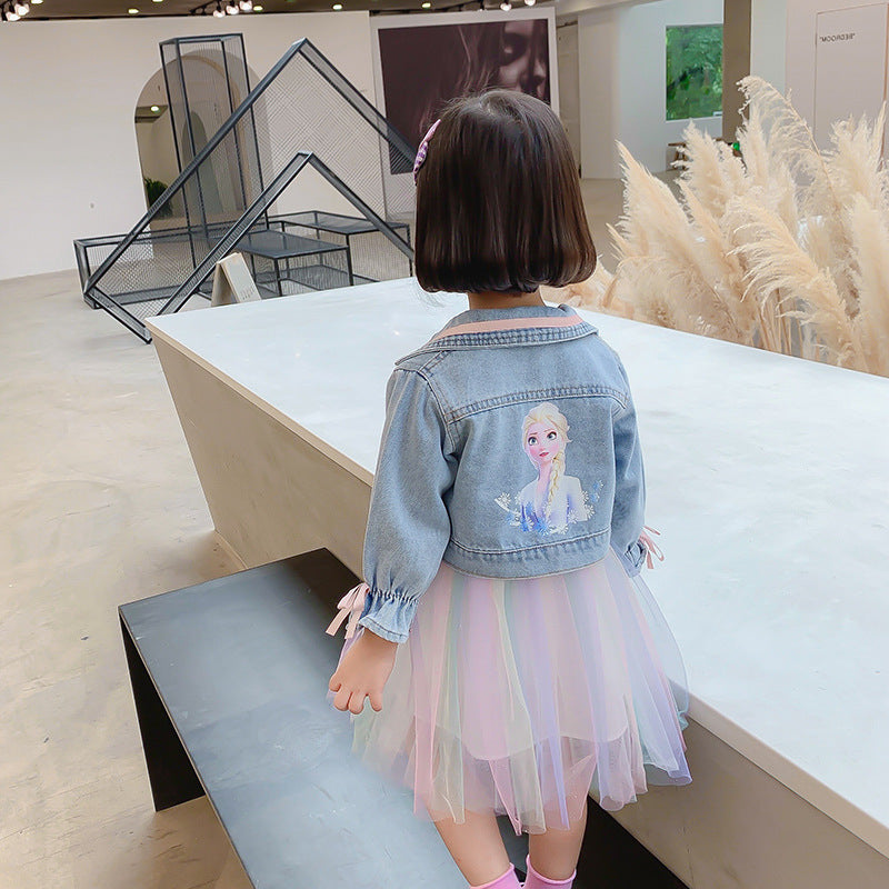❄️ Let your little fashionista shine like a princess with this Elsa-themed denim skirt two-piece set—perfect for spring 2024! This Korean-style outfit includes a stylish printed top and a cute denim skirt that gives off major Frozen vibes 👗👧✨