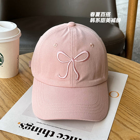 Add a touch of sweetness to your everyday look with this South Korea-inspired embroidered bow baseball cap! π In a soft pink hue with charming white face embroidery, this small, all-match duck tongue hat is designed to complement any casual outfit effortlessly.