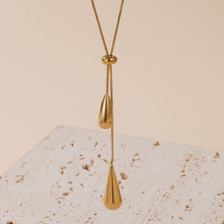 Elevate Your Look with Effortless Elegance! This European and American cross-border luxury jewelry set features a stunning water drop tassel necklace and matching earrings, crafted from high-quality titanium steel for a long-lasting, skin-friendly shine.