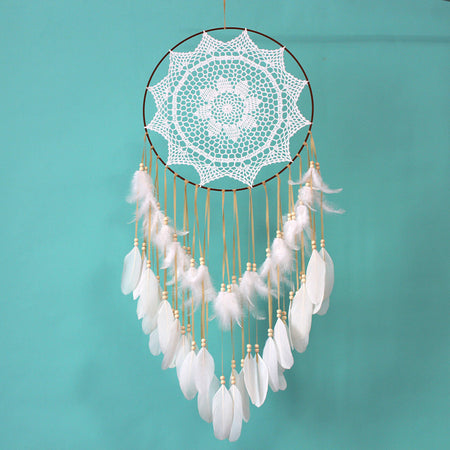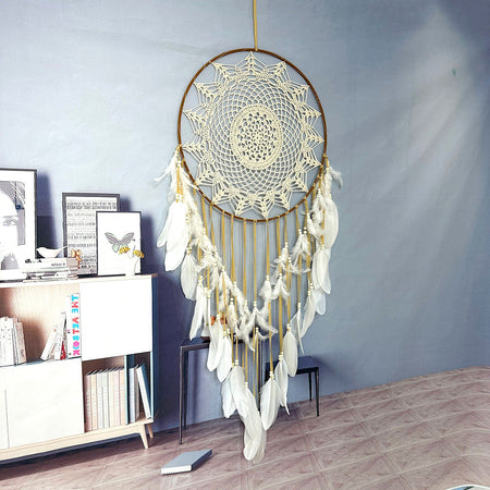 Make a bold and elegant statement with this European-American Style Crochet Dream Catcher πΈπβdesigned with a hand-knotted centerpiece, flowing feathers, and subtle chimes that soothe the spirit.