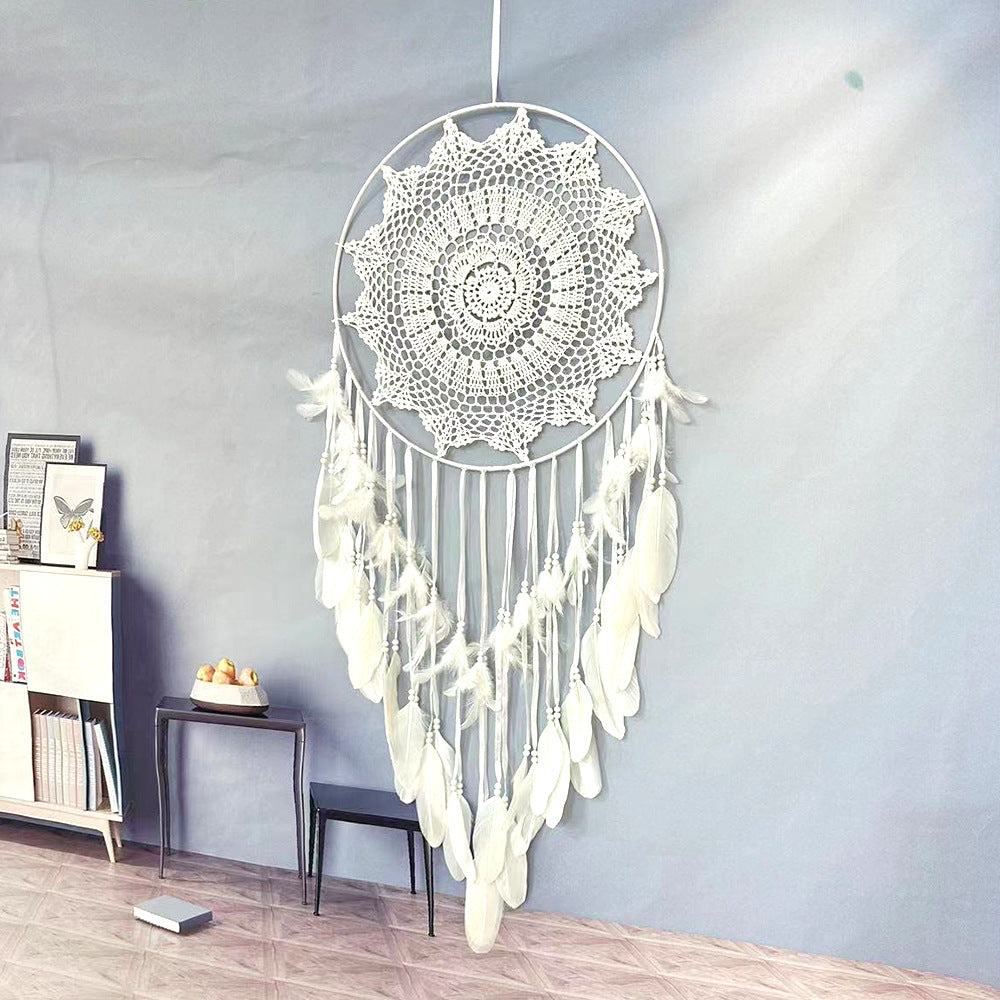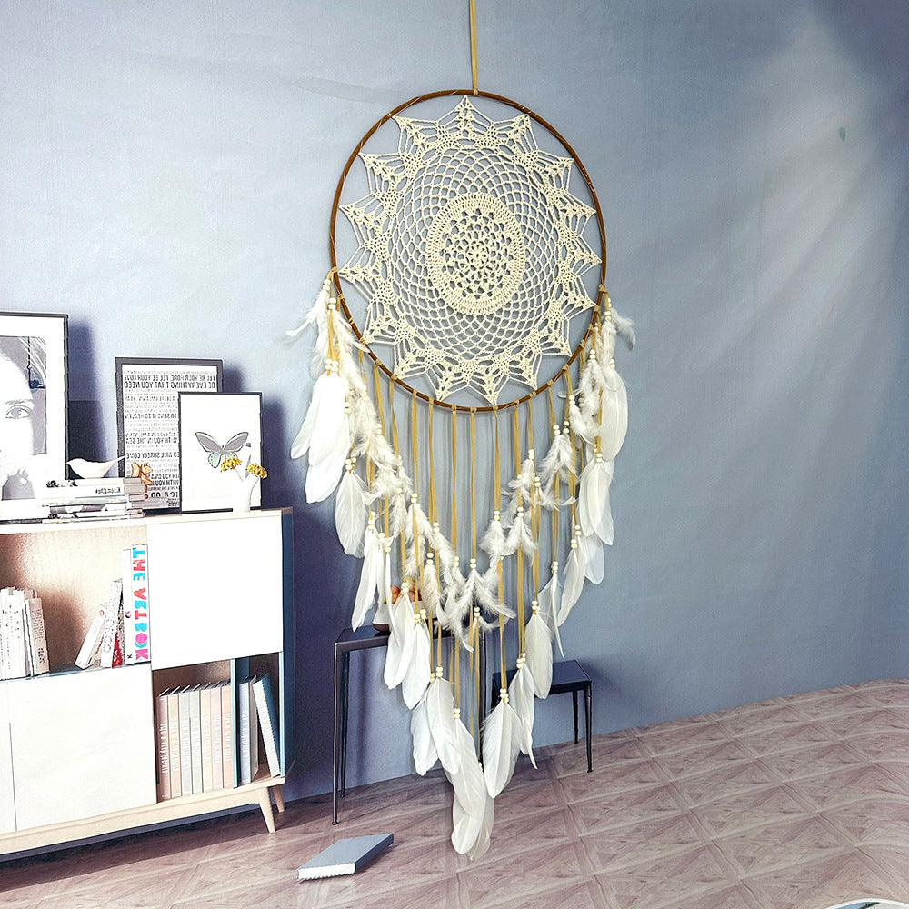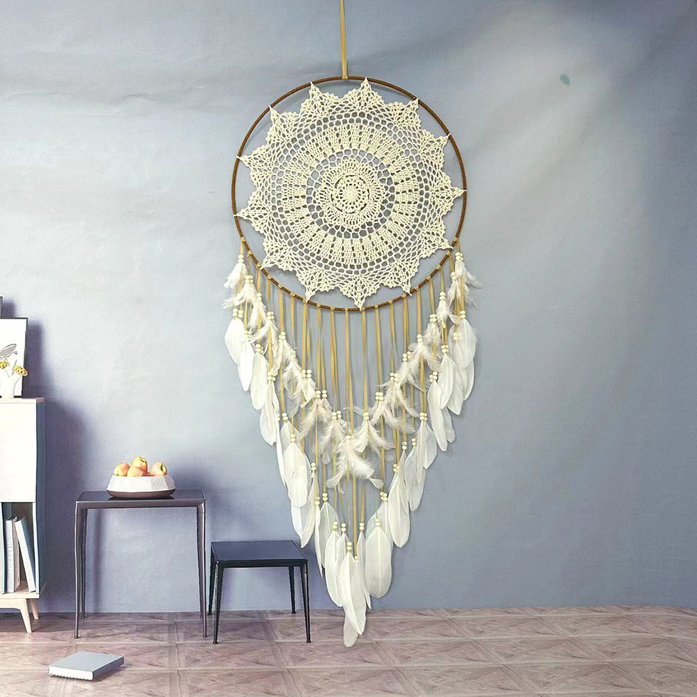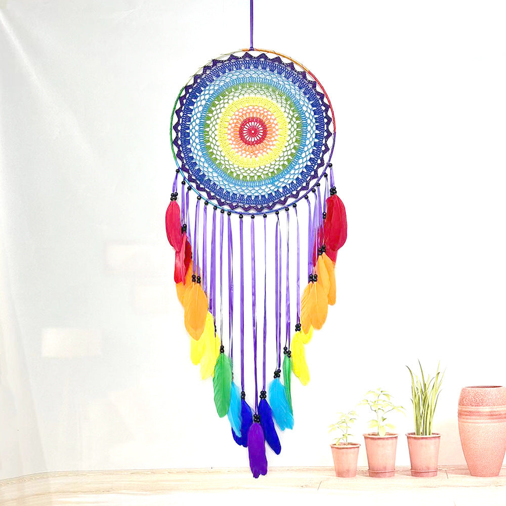Crochet Dream Catcher with Feather Wind Bell β Large Decor