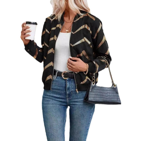 Printed Sawtooth Zipper Pilot Jacket for Women