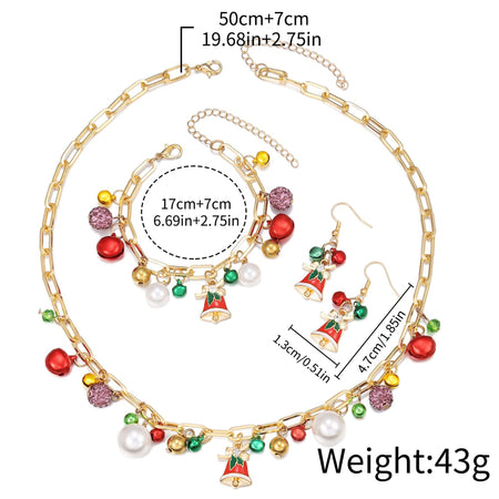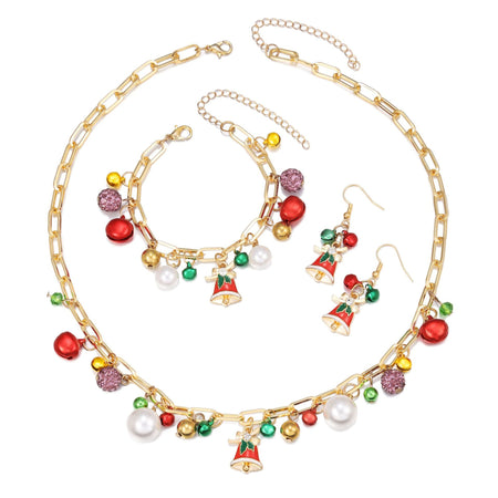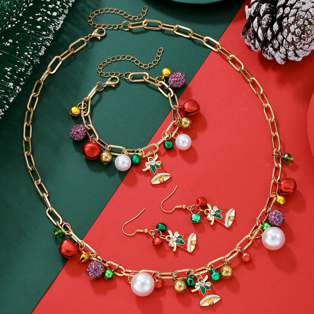 Christmas Bell Jewelry Set – Pearl Earrings, Bracelet & Necklace