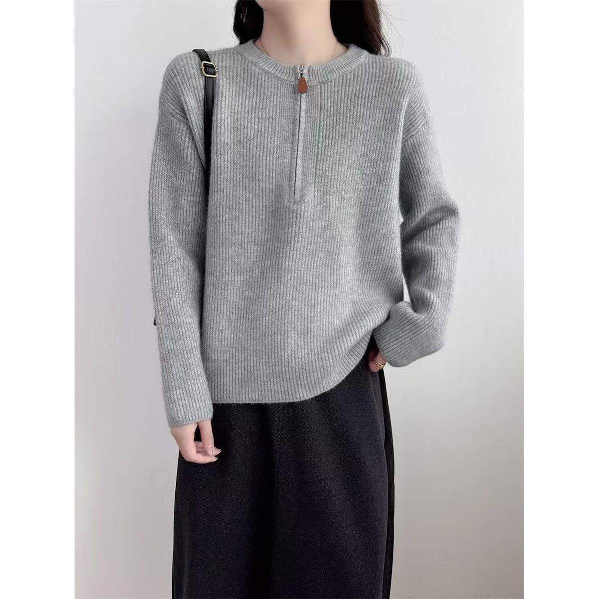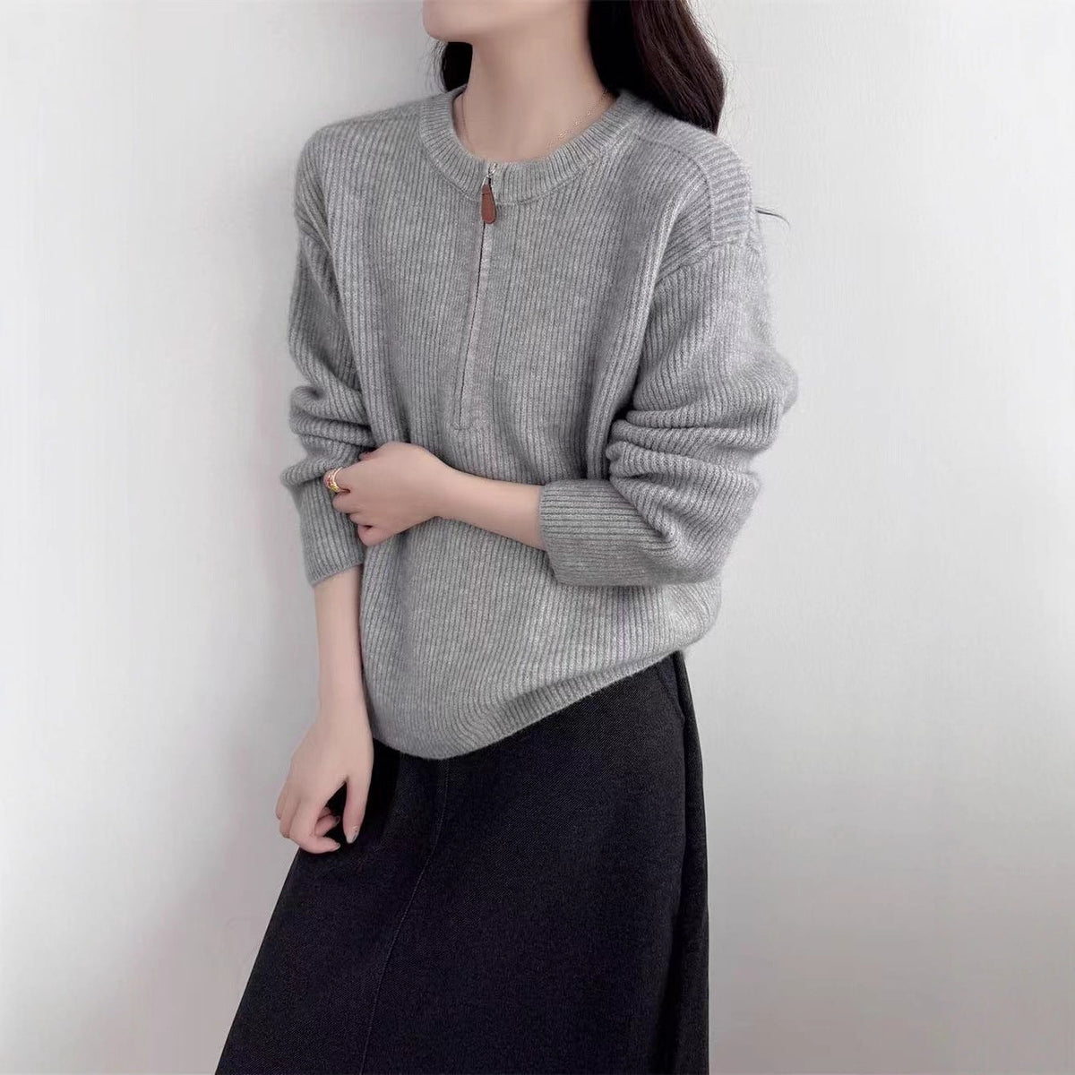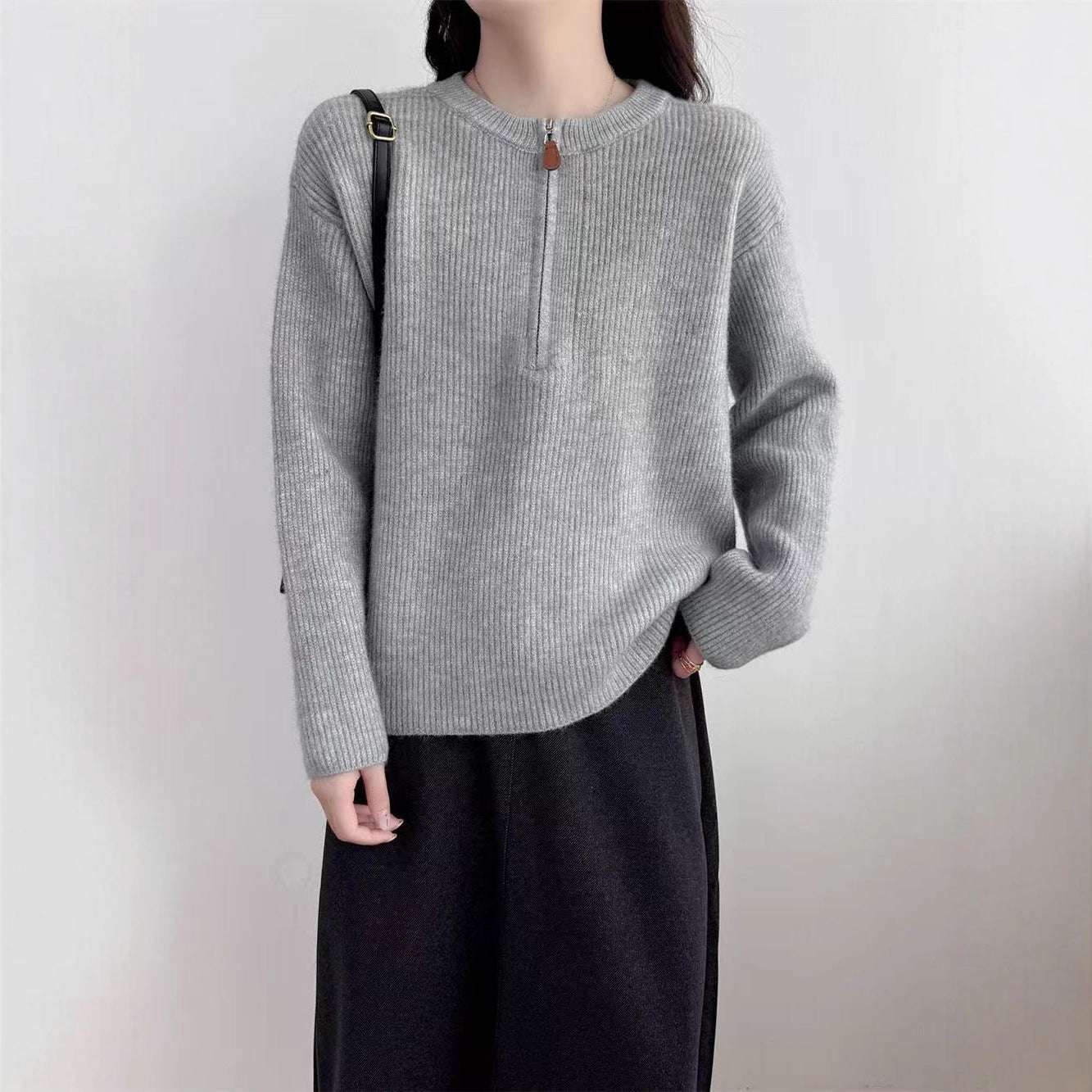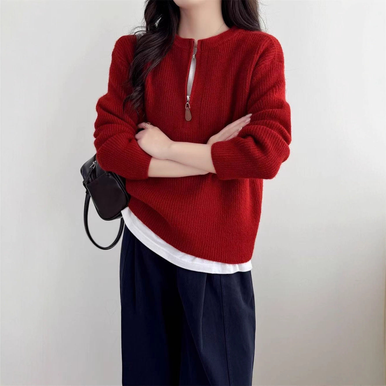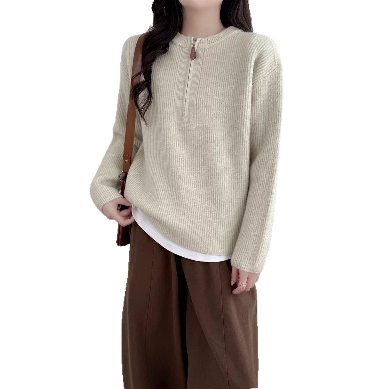 Stay effortlessly chic this winter with this cozy half-zip pullover sweater β a wardrobe essential for women who love comfort with style. Pair it with sneakers for a casual street look or boots for an elegant winter outfit! π