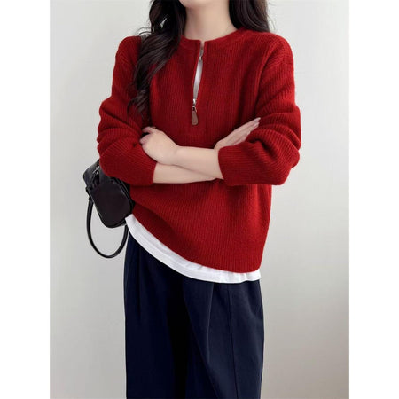 Half-Zip Knit Sweater β Casual Loose Winter Pullover