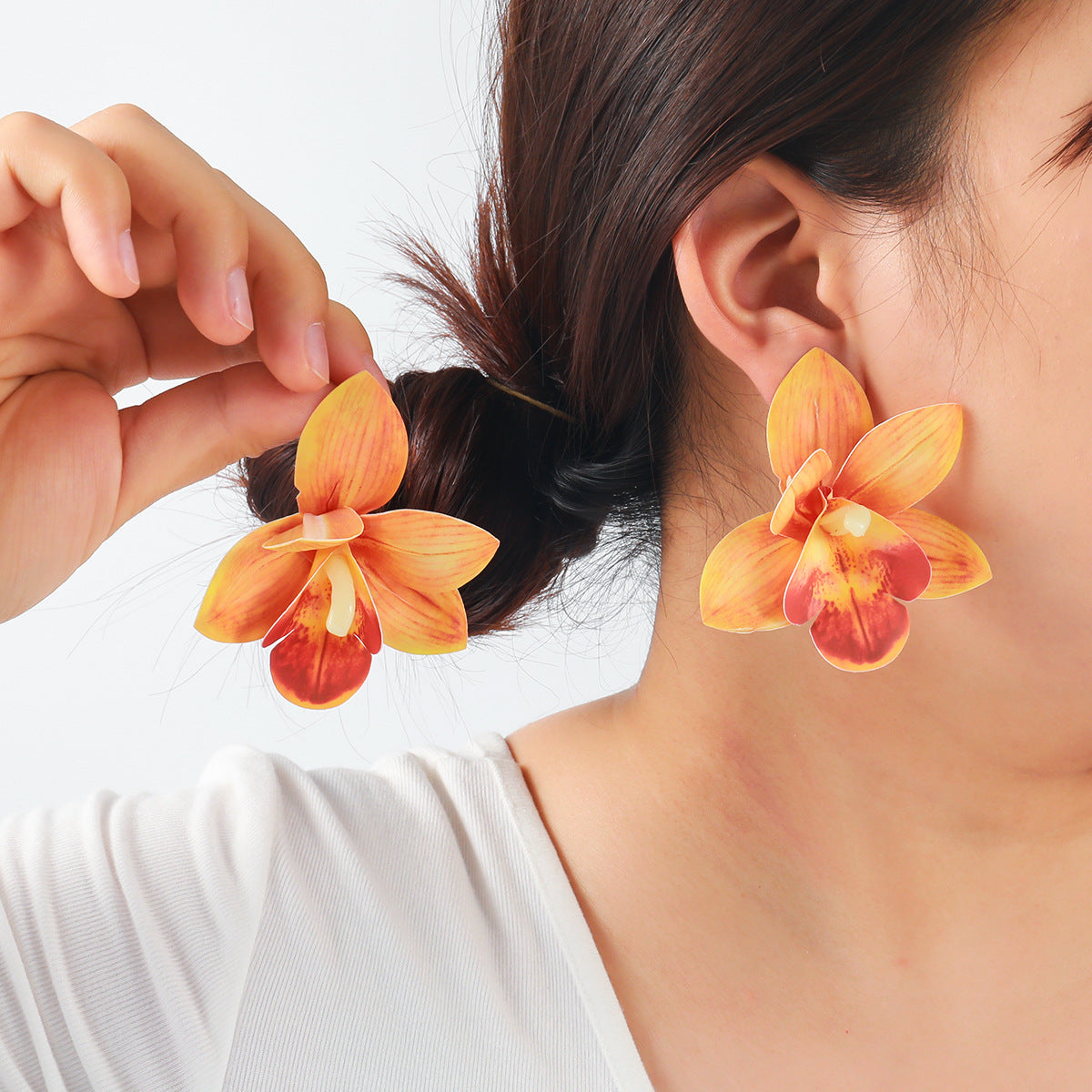 Make a bold entrance with these Exaggerated Butterfly Orchid Earrings. Inspired by nature, they feature layered florals for a dramatic, artistic vibe perfect for summer vacations or special events.