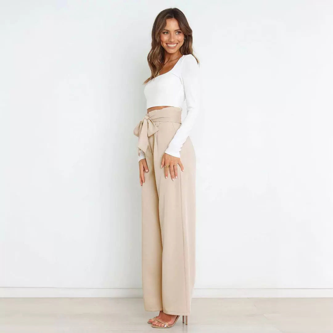 Women’s Wide-Leg Workplace Suit Pants with Belt