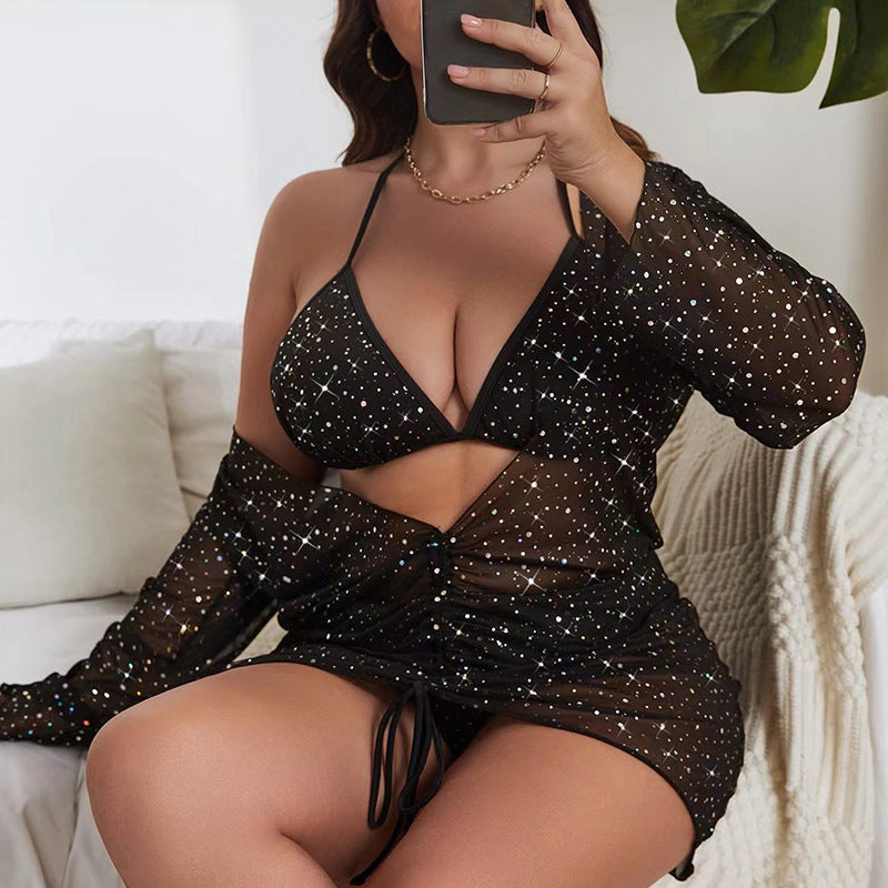Plus Size Three-Piece Swimsuit – Bikini & Skirt Set