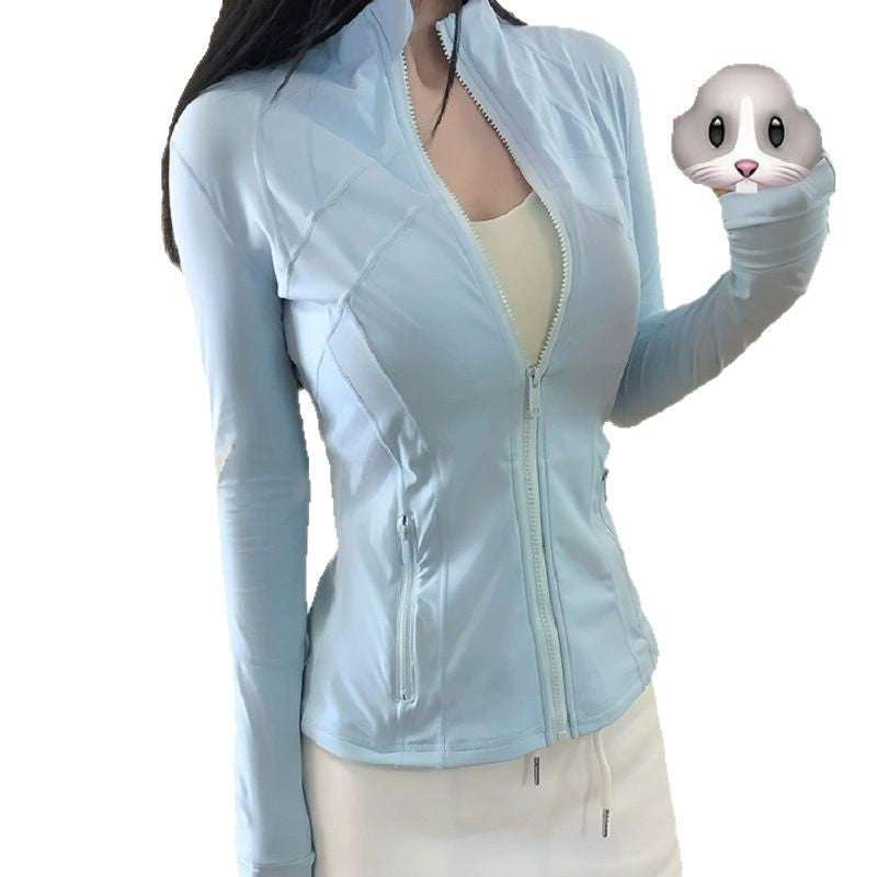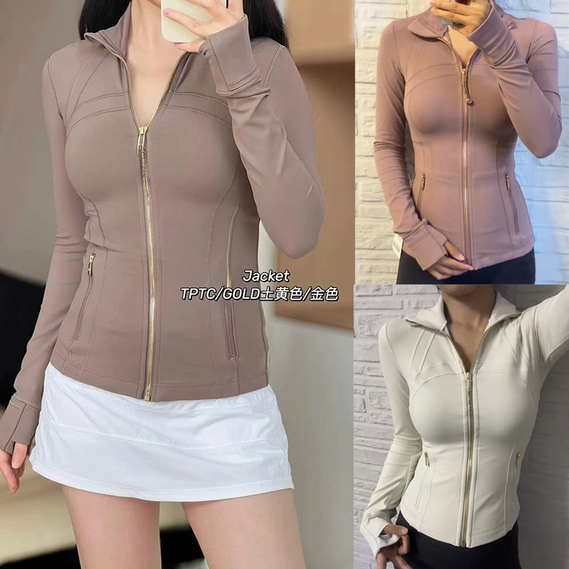 Women’s Long Sleeve Yoga Jacket – Slim Gold Zipper Sports Top