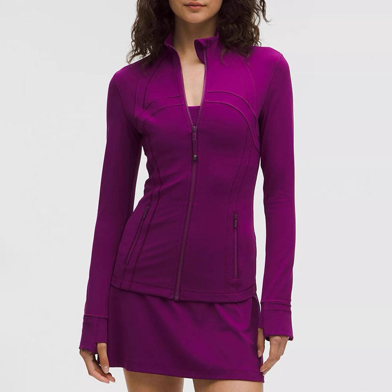 Add a touch of luxury to your activewear with our Slim Gold Zipper Yoga Jacket. Designed with European & American flair, this fitted sports top is the perfect mix of fashion and function.