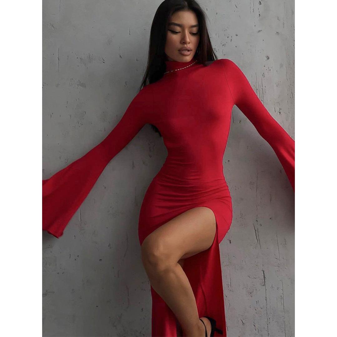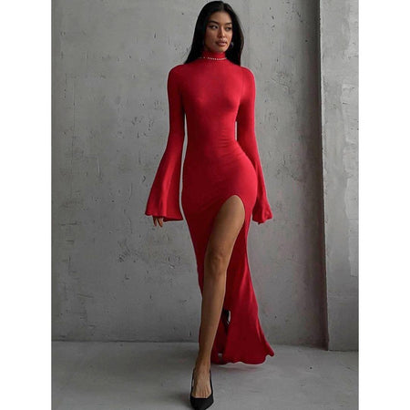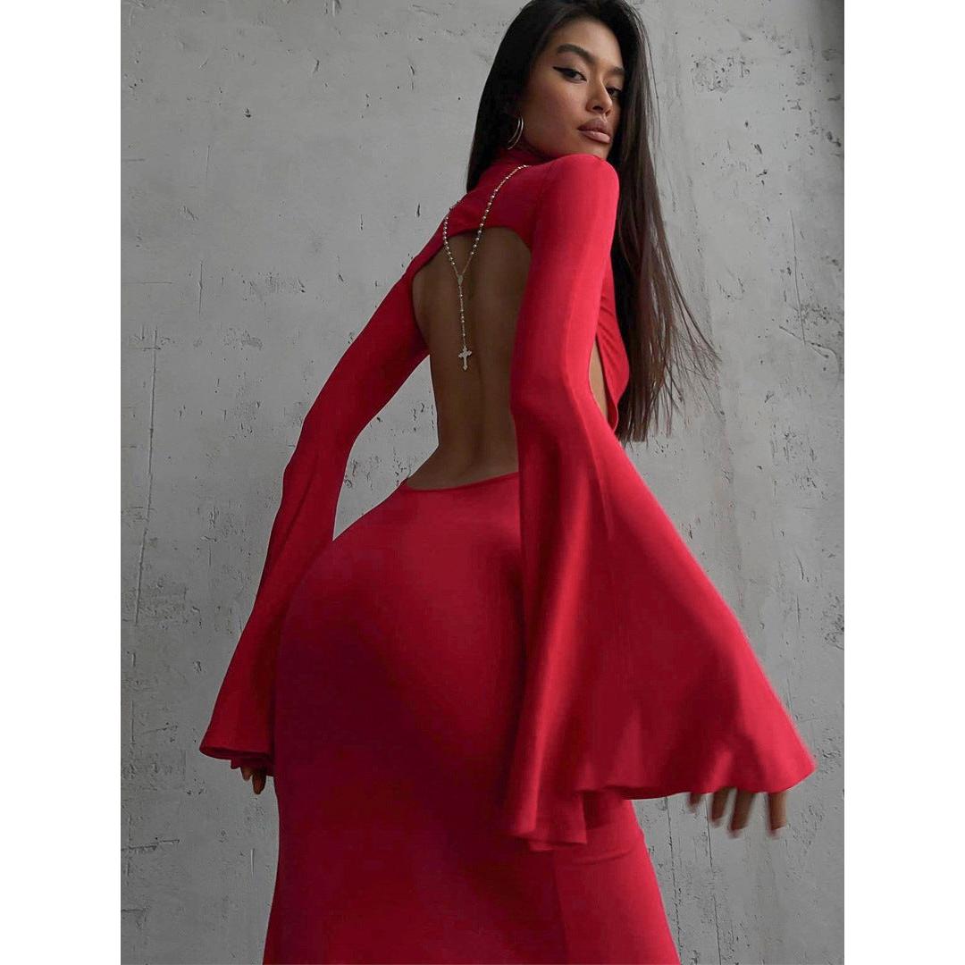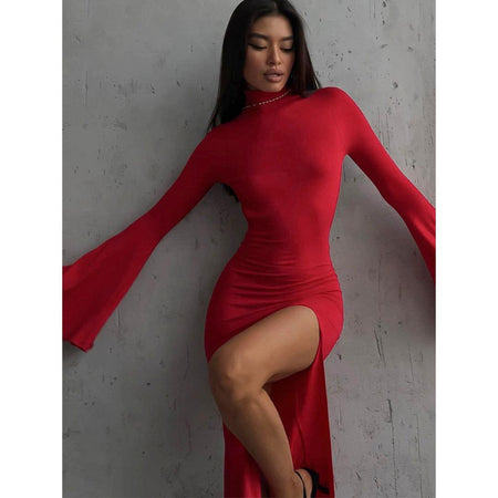 Turn heads with this elegant and sexy backless split dress πΉ β the perfect blend of sophistication and allure in a European and American-inspired style. Featuring dramatic horn sleeves, a graceful high slit, and a sultry open-back design, this dress is made to highlight your figure and make an unforgettable entrance.