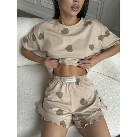 Stay stylish and comfy with our European & American Wildberries Pajama Set! π Featuring a love-themed design, this short-sleeved top and shorts two-piece set is perfect for homewear or lounging around. The vibrant, trendy design adds a playful touch, while the comfortable fabric ensures you stay cool and cozy all day long. Whether youβre chilling at home or enjoying a lazy day, this set combines fashion and comfort effortlessly. π