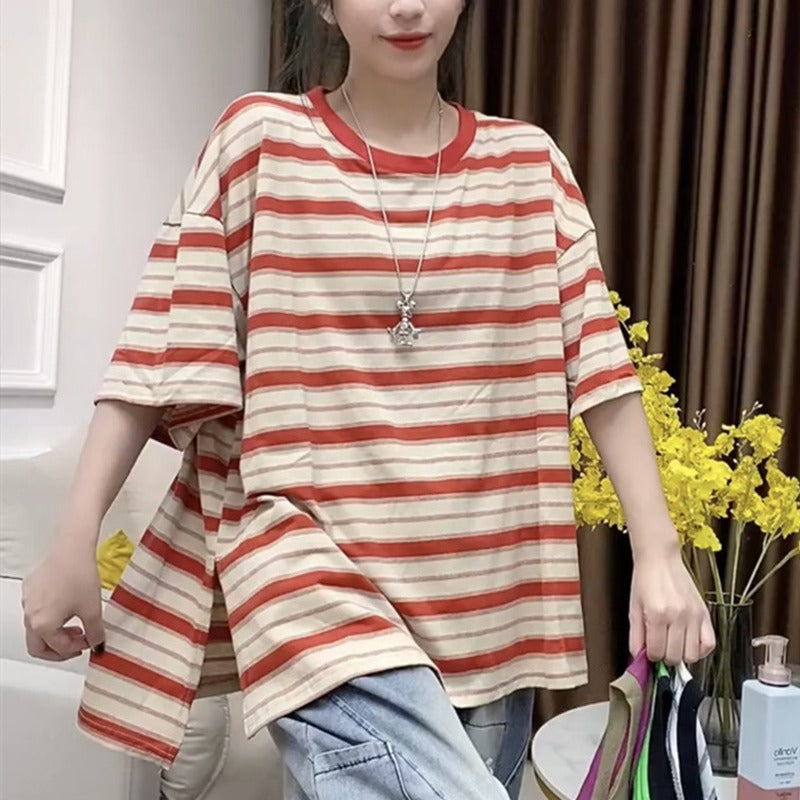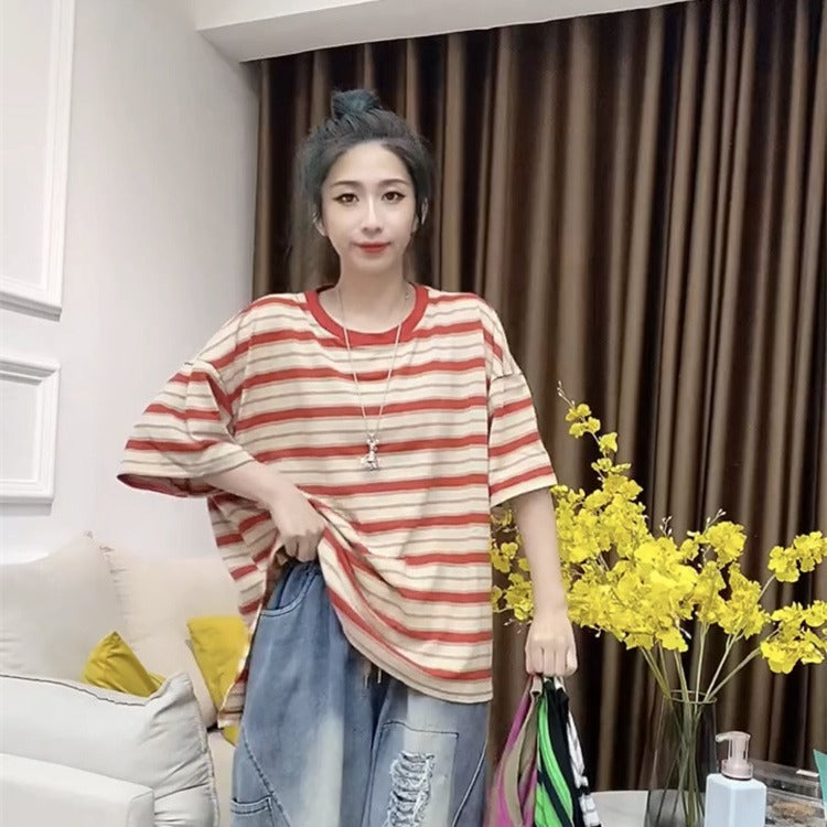 Brighten your summer wardrobe with this European large-size cartoon printed T-shirt, specially designed for chubby girls weighing between 1.00 kg and 150.00 kg. Featuring a fun, eye-catching print, this trendy top offers a loose, comfortable fit that flatters and reduces the appearance of age, making it perfect for youthful, casual style.