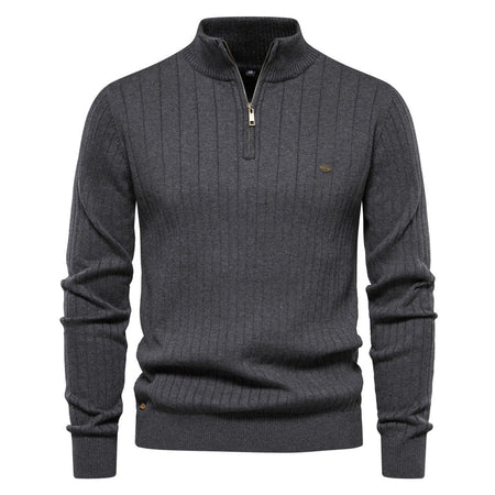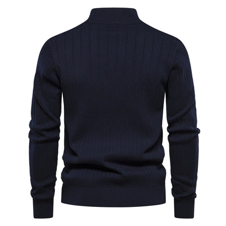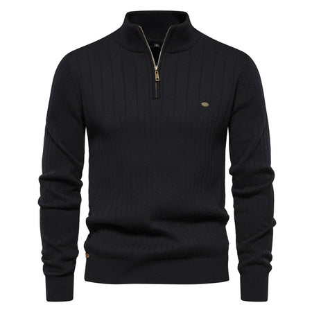 European Size Men's Half-Zipper Solid Color Sweater
