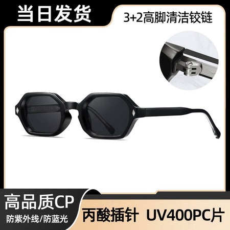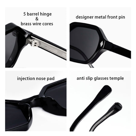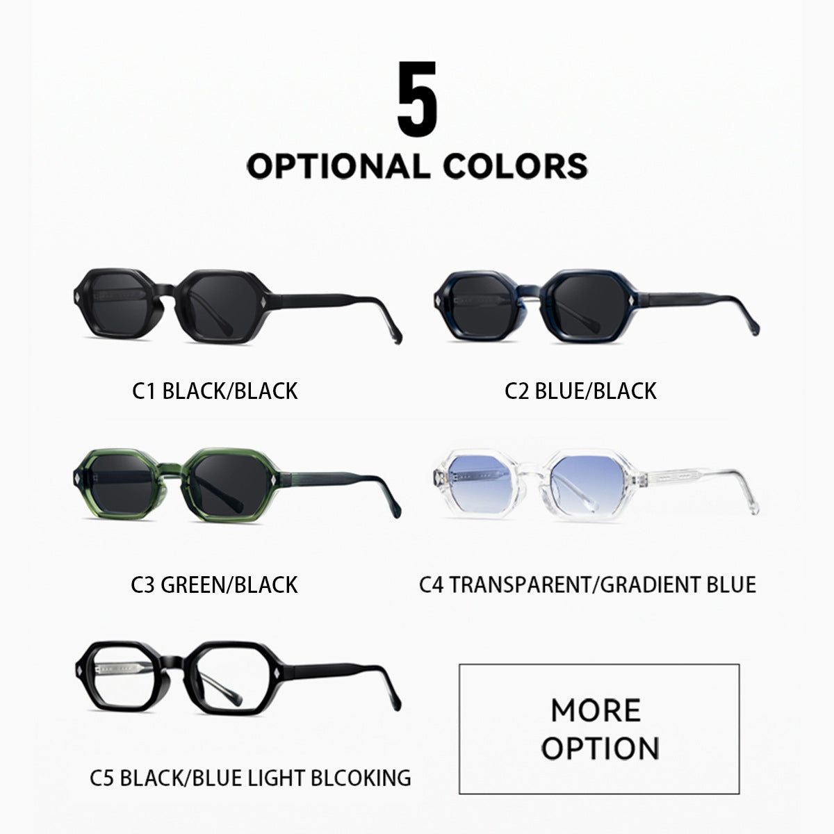 Crafted with a durable acrylic frame and featuring white copper pins for a refined finish, these sunglasses are lightweight yet sturdy, perfect for all-day wear. The polygonal small frame design adds a trendy edge that complements both casual and formal outfits, making them incredibly versatile for any occasion.