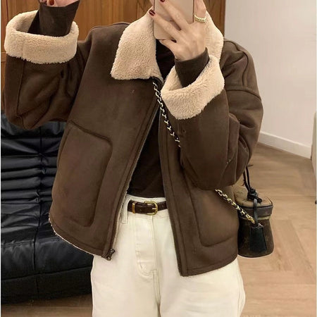 Made with premium thickened cashmere, it provides softness, warmth, and comfort even on chilly days. The lapel design adds a touch of sophistication, while the small motorcycle-style cut offers a modern, stylish silhouette. Whether paired with jeans, skirts, or trousers, this jacket effortlessly combines fashion and functionality.