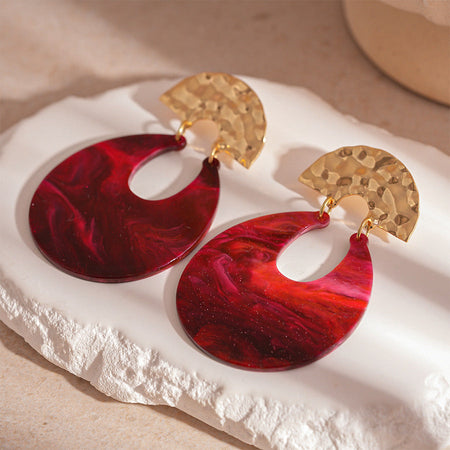 Angela Red Resin U-Shape Earrings – Fashionable Women’s Style