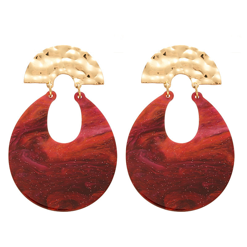 Make a bold statement with these Exaggerated Angela Red Resin U-Shaped Earrings, designed with a high-end silver pin for comfort and durability. The European and American retro vibe meets modern elegance in this eye-catching, niche fashion piece.