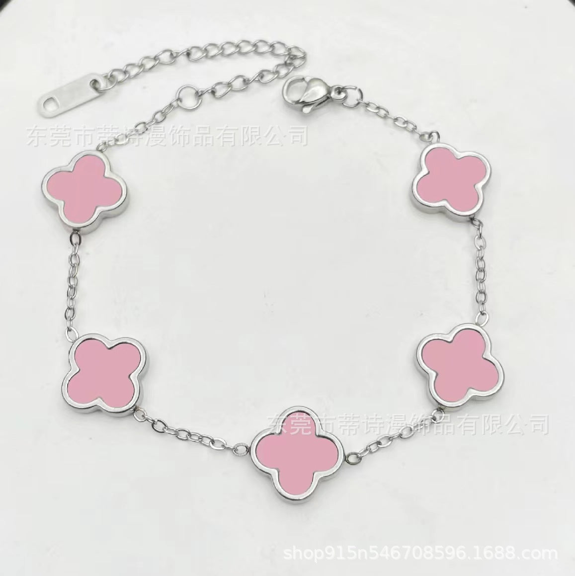 Titanium Steel Four-Leaf Clover Double-Sided Bracelet