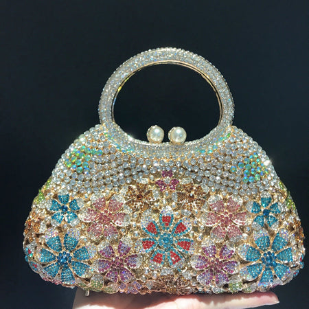 🌼 Sparkle like a daisy in bloom! This full-diamond bag brings floral glam to your evening look.
