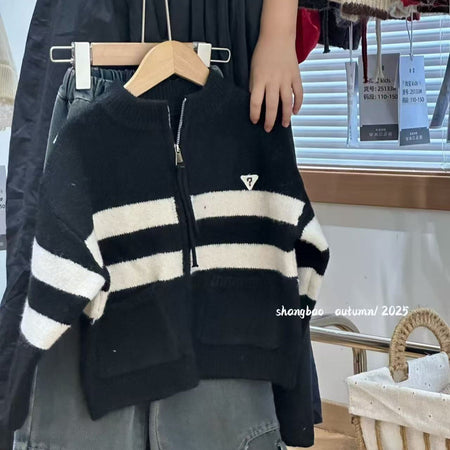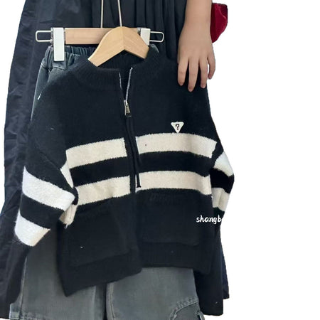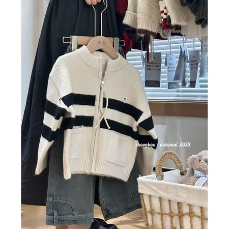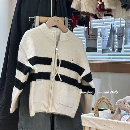 Boys’ Knitted Cardigan – Autumn/Winter Colorblock Sweater