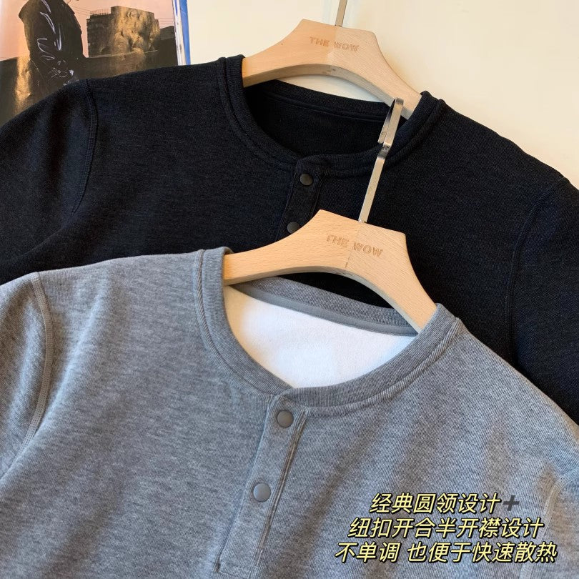 Experience ultimate warmth 🥶 with this composite polar fleece heating sweater T-shirt. Featuring a round neck and half-open collar, it’s designed for autumn and winter ❄️ casual wear.