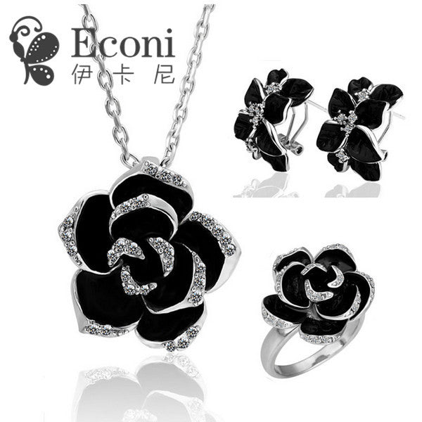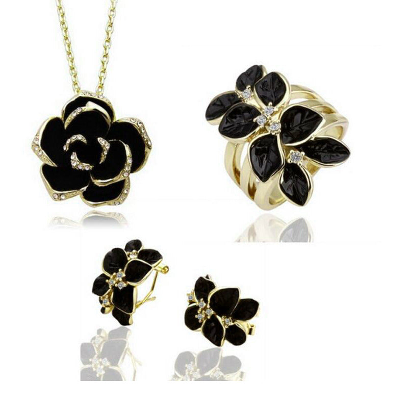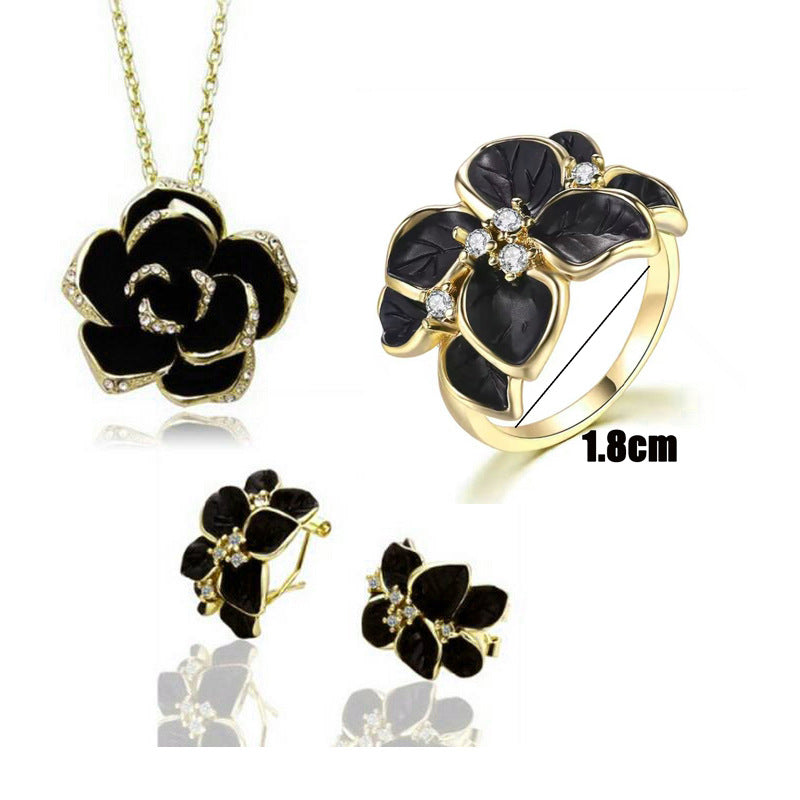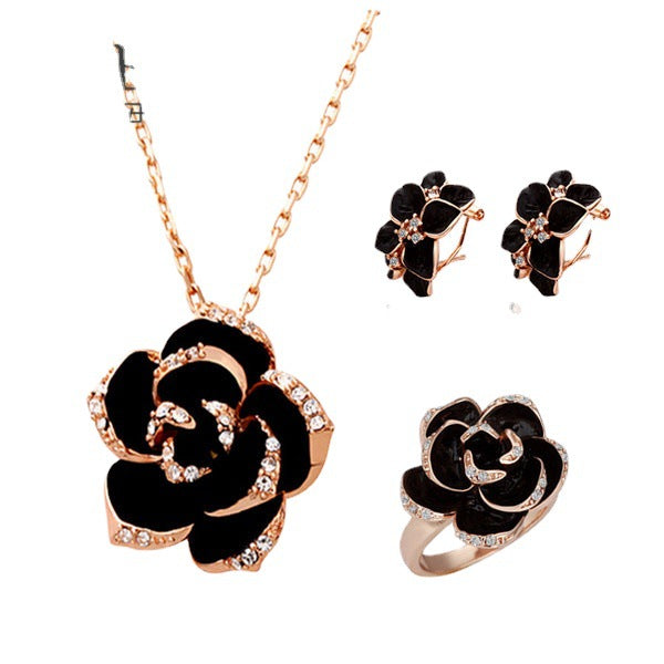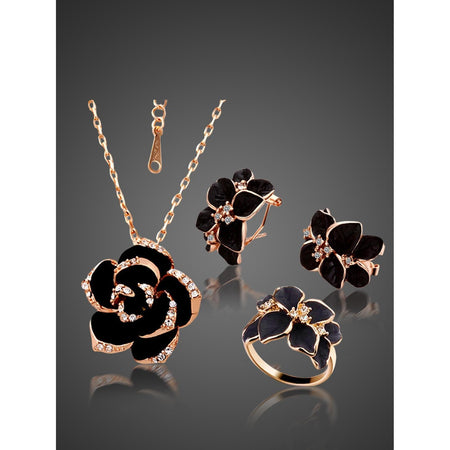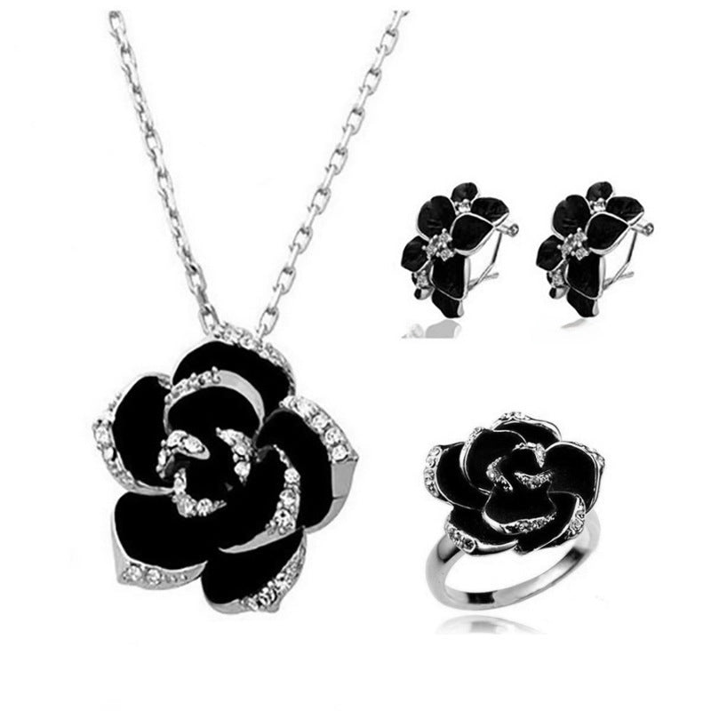 Elegant 3-Piece Black Rose Jewelry Set – Stylish Women’s Set