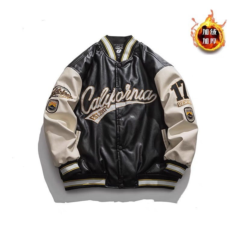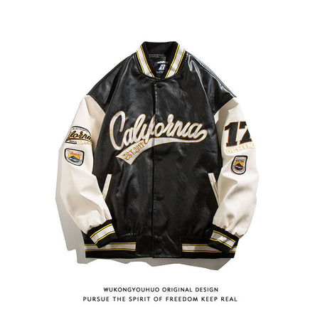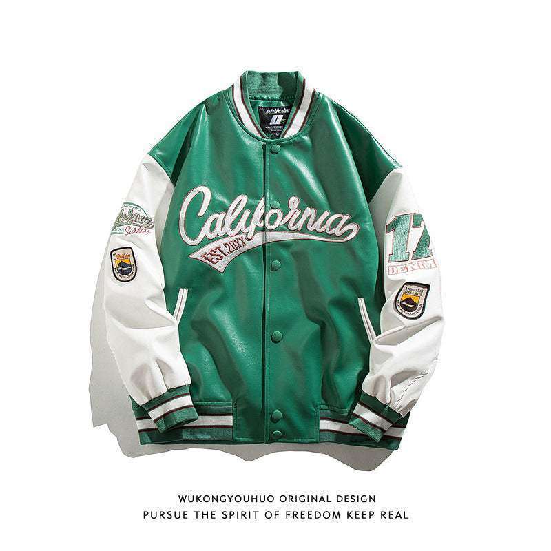 Step out in style with this fashionable brand PU leather baseball jacket for men. Designed for spring and fall, it blends streetwear vibes with a loose couple bomber fit, making it perfect for both comfort and fashion.
