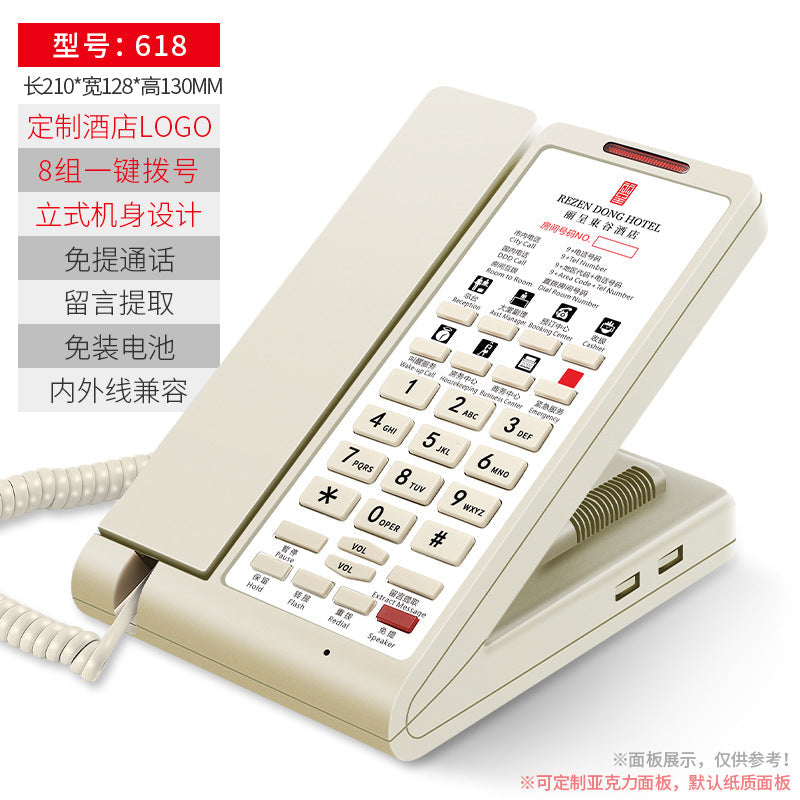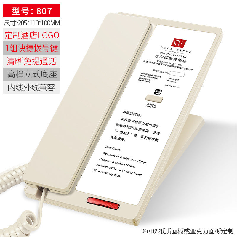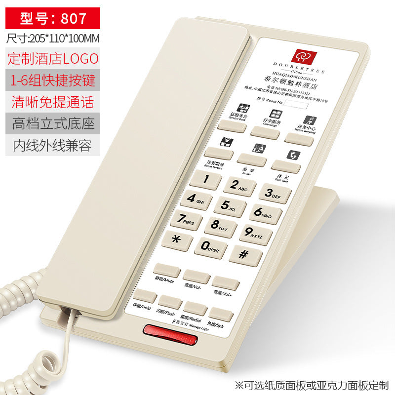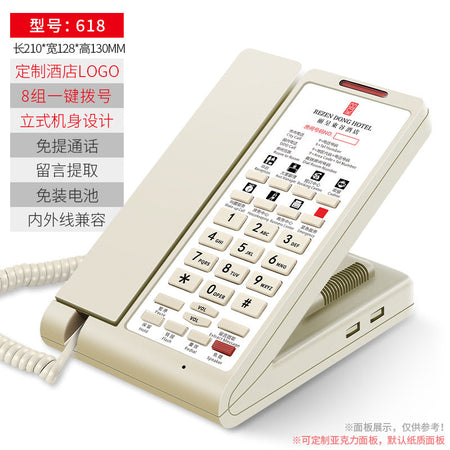 Built with durable materials and a clear keypad, the phone supports customizable printable logos, allowing hotels to personalize their equipment for branding and professional appearance. The landline design ensures stable connections without worrying about network interruptions, crucial for smooth hotel operations.