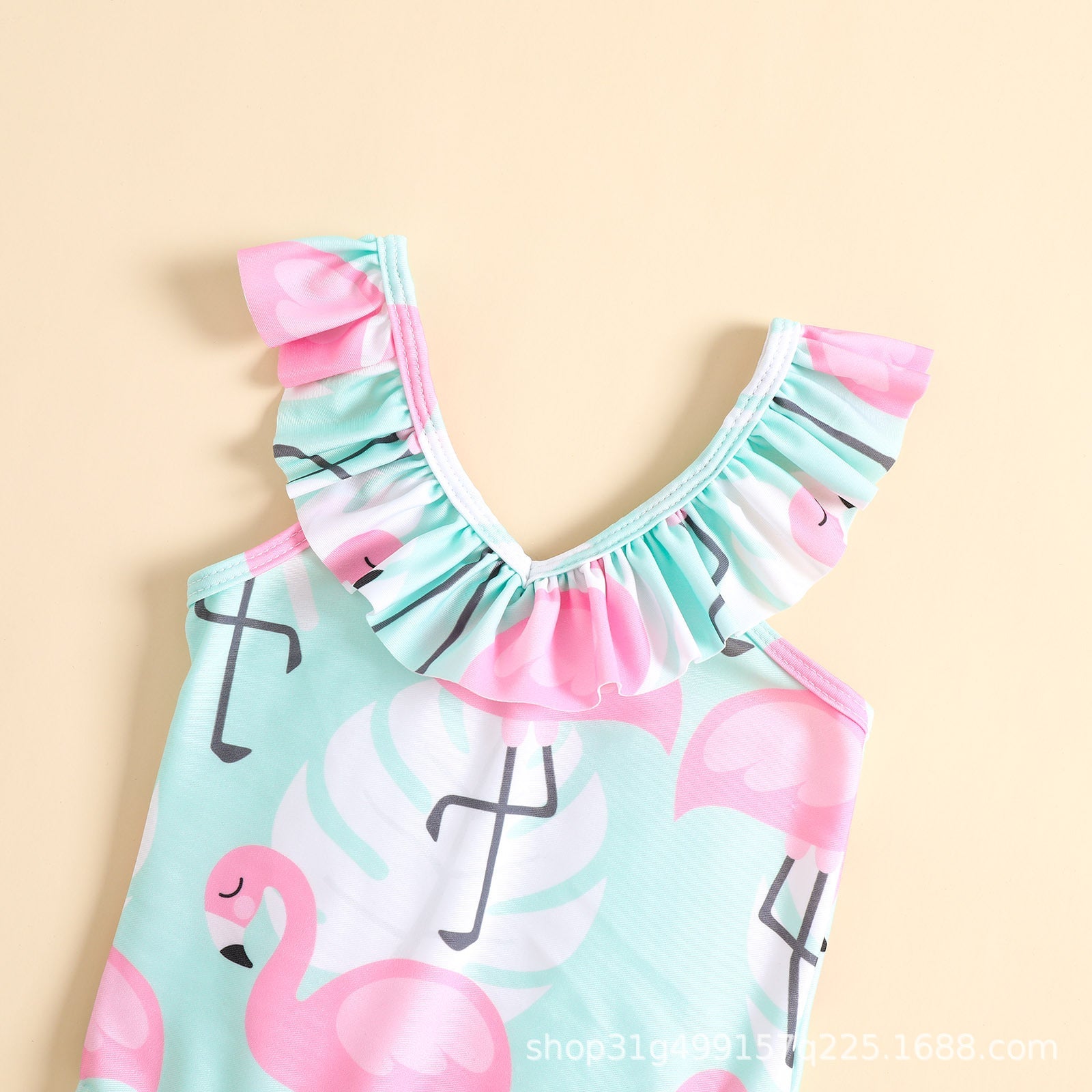 Flamingo Print Girls’ Swimsuit – Cute V-Neck Beachwear