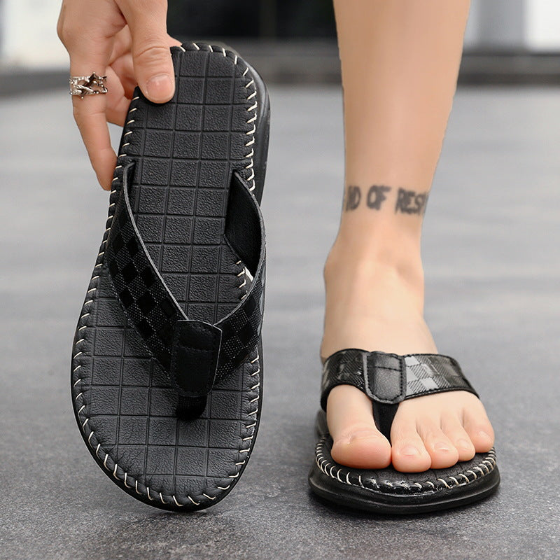 High-End Leather Flip-Flops Non-Slip & Comfy