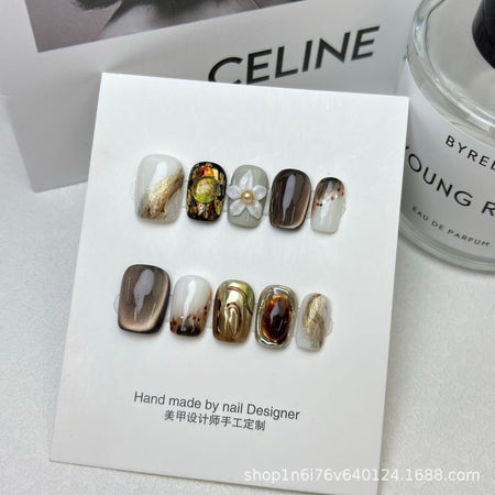 Each nail is crafted with intricate floral carvings and a soft-touch matte finish. Easy to apply and remove, these press-ons make you feel like a walking bouquet โ perfect for weddings, dates, and tiktoks!
