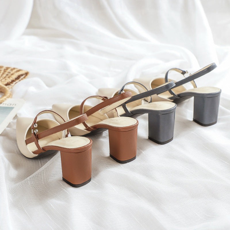 Women’s Summer Pointed Baotou Thick-Heel Dress Heels