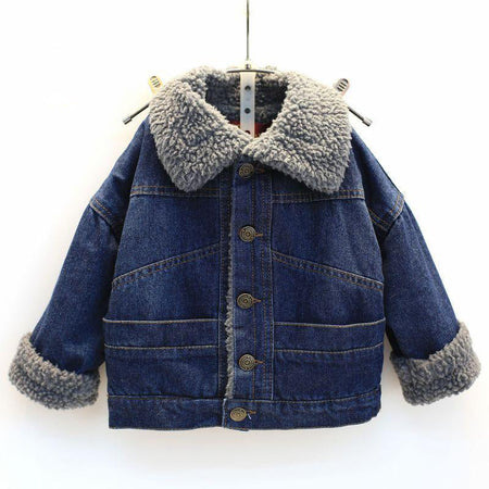 Stay cozy this winter with this fleece-lined thickened denim coat, designed for boys and girls. With its lambskin interior, this jacket provides extra warmth while keeping your child stylish. ❄️
