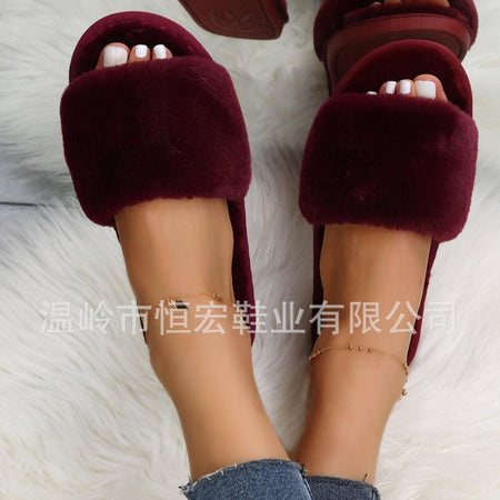 Furry One-Word Slippers – Warm Indoor